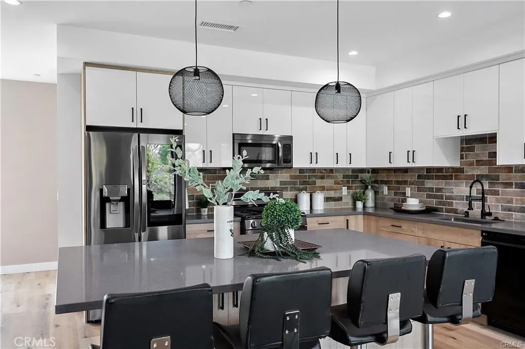 Experience modern luxury in this stunning new-construction home in the highly desirable Valley Village neighborhood. Built in 2022, this contemporary townhome-style single-family residence features a bright, open floor plan filled with natural light, complemented by beautiful engineered wood flooring throughout. Enjoy the convenience of a private two-car garage with direct access and a welcoming front entrance. The first level features a spacious office area that can easily function as a guest bedroom or flex space. Upstairs, the main living level showcases a gourmet kitchen designed for both style and functionality, featuring a large center island, quartz countertops, stainless steel appliances, and custom cabinetry. The kitchen seamlessly flows into the expansive living and dining areas, complete with a private balcony, perfect for relaxing or entertaining. This level also includes a powder room and a dedicated laundry area. The top floor offers well-appointed living quarters, including two generously sized guest bedrooms, a full bathroom, and a versatile study nook. The luxurious primary suite features large windows, a walk-in closet, and a beautifully designed en-suite bathroom with a spacious shower. Situated on a charming tree-lined street, this exceptional home is just moments from shopping, dining, and entertainment, with easy access to the 170, 405, and 101 freeways. Enjoy being only minutes away from Universal CityWalk and all that the surrounding area has to offer. A true must-see property that perfectly blends style, comfort, and convenience.