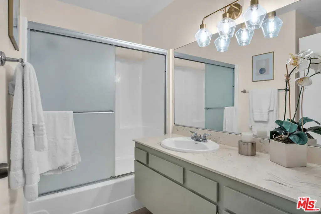 Searching for a stylish modern home with a prime Valley Village location? This newly remodeled 2-bedroom, 2-bath condo in the desirable Briarcrest community blends comfort, practicality, and understated elegance! Enter to discover soft carpeting, calming neutral tones, and an impressive floor-to-ceiling window overlooking verdant treetops. A sleek corner fireplace anchors the light-filled living and dining areas, while the adjacent kitchen gleams with stainless steel appliances, abundant cabinetry, and a decorative backsplash. A flexible work or entertaining space, the tucked-away nook with pendant lighting currently features a bar ready for hosting, but can be converted to meet any need.Enjoy walk-in closets in both serene bedrooms, and be inspired by the sophistication of the built-in make-up vanity in the primary suite. Beyond the front door, the complex offers a pool, spa, gym, sauna, dedicated parking, and controlled entry for security. Minutes from Los Angeles Valley College, the NoHo Arts District, and Studio City, you’ll have easy access to scenic parks and major freeways. Come see where fresh design defines L.A.’s urban lifestyle, as your next chapter starts right here!