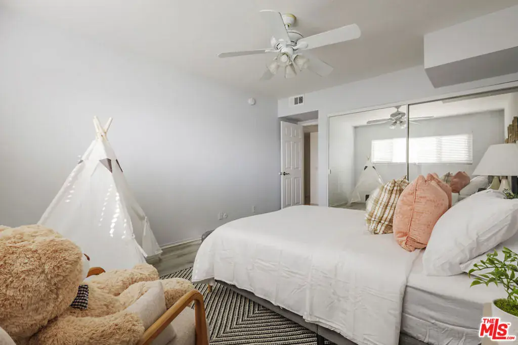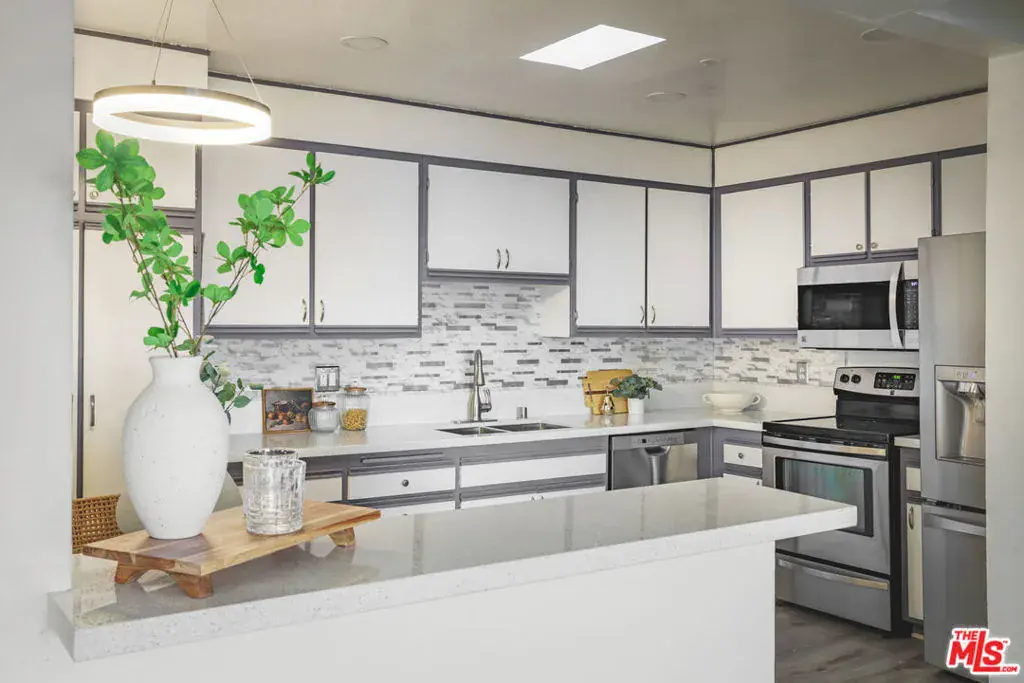 TOP FLOOR! You only share one wall in this beautiful corner penthouse unit, with VIEWS OF THE HOLLYWOOD HILLS! PRIME Valley Village! This spacious 3-bed, 2-bath residence offers over 1,600 sq ft of open-concept living with abundant natural light, high living room ceilings, and great flow throughout. The mirrored living area opens to a private balcony. It flows seamlessly into kitchen and additional dining space, creating the perfect environment for entertaining or relaxing at home. The primary suite features two large closets and en-suite bath with double vanity and a tub. Two additional bedrooms provide flexibility for guests or a home office. Situated in a quiet, secure building with controlled access, covered side by side gated parking spots, and a well equipped gym, this condo combines comfort and convenience in one of the most desirable pockets of the Valley. Just minutes from Studio City, the new Sportsmen’s Lodge shops, dining, and the 101/170 freeways this is Valley Village living at its best. Come make it your own!