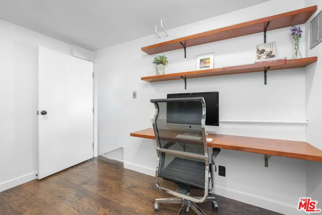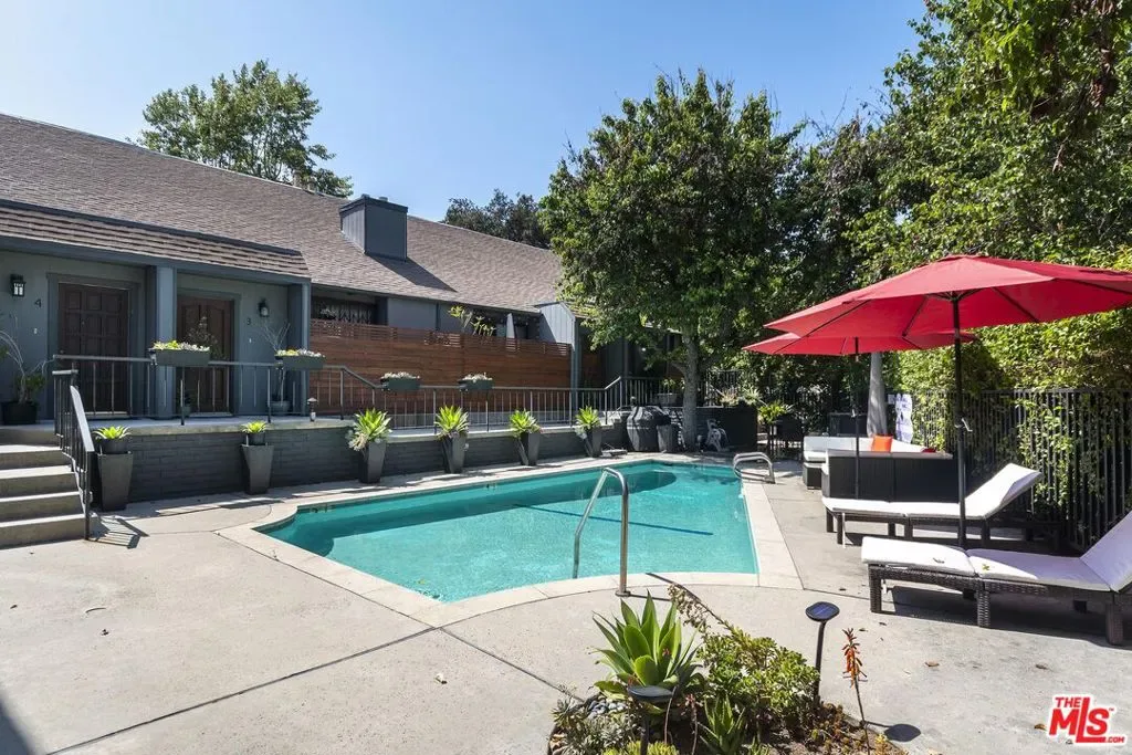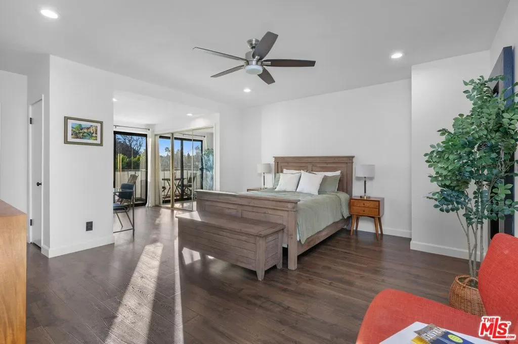 Welcome to a refined, multi-level townhome in the heart of Valley Village, directly across from the beloved Valley Village Park. This impeccably updated 2BD/2BA residence offers a rare sense of continuity and care. The home showcases soaring ceilings, a private patio and balcony, sophisticated smart-home technology, and is one of the few units in the community to feature a private two-car garage. Step into a warm and inviting living space, highlighted by vaulted wood-beam ceilings, a fireplace, custom built-ins, and direct access to a tranquil private patio, ideal for both everyday living and entertaining. The living room opens effortlessly to the dining area, creating a cohesive and airy layout. Renovated in 2025, the modern kitchen features newer appliances, custom white oak cabinetry, quartz countertops, and elegant undermount lighting. Adjacent to the dining area, the secondary bedroom is filled with natural light from expansive windows and offers custom closet built-ins along with a beautifully renovated ensuite bath featuring a luxurious step-in shower. Upstairs, the primary suite serves as a serene retreat, complete with three closets, a private balcony, and yet another renovated ensuite bath with a sleek tub/shower combination and a smart Toto toilet. The lower level includes a private two-car garage and a versatile bonus room, ideal for a home office or creative studio. Additional highlights include in-unit washer and dryer, a new roof installed in 2025, community pool and grill, and secure remote camera entry to the complex. The intimate, all owner-occupied community offers an HOA that covers water, high-speed internet and basic cable in addition to property maintenance and insurance. Ideally located moments from award-winning Colfax Charter Elementary, recreation facilities, the Red Line train/subway station, and NoHo Arts District dining and theaters, this residence delivers exceptional quality, convenience, and value.