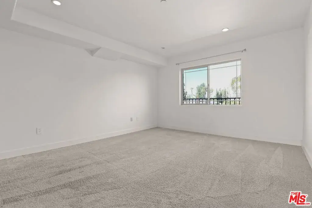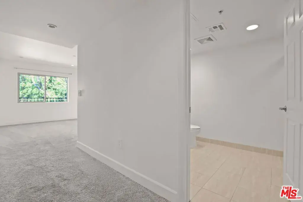 This beautifully updated 1,165 sq. ft. corner condominium offers two bedrooms and two bathrooms on a single level, with windows on three sides that fill the home with natural light and showcase open views. Built in 2011 and meticulously maintained, the residence combines modern upgrades with everyday comfort. The open-concept living and dining area features engineered walnut wood flooring and expansive windows that create a bright, airy atmosphere. The stylish kitchen is equipped with granite countertops, crisp white cabinetry, and premium appliances, including a Thermador professional range and dishwasher, a Bosch refrigerator with Thermador handles, and in-unit washer/dryer. Updated plumbing fixtures, contemporary hardware, full-spectrum recessed lighting, ECOS non-toxic paint, and cellular window shades add thoughtful finishing touches throughout. Designed for privacy, the two generously sized bedrooms are positioned on opposite sides of the unit. The primary suite enjoys peaceful tree and sky views and includes an en-suite bath with a large soaking tub. A second full bathroom in the hallway also features a soaking tub. Additional highlights include a private balcony with treetop views, a tankless water heater, and two tandem parking spaces in the street-level garage with convenient access to the building’s elevators and stairwells. Ideally situated in Valley Village, the property offers easy access to the 101 and 170 freeways, parks, dining, shopping, and entertainment. Restaurants and supermarkets are within walking distance, making daily errands effortless. A wonderful opportunity to lease a well-appointed, newer condo in a prime location.