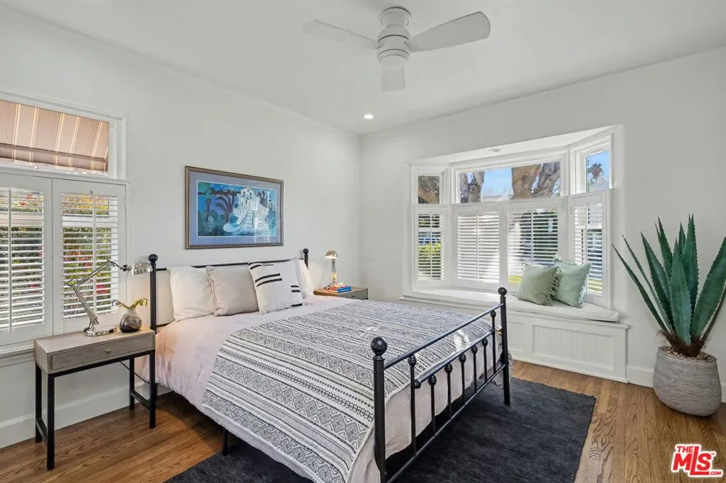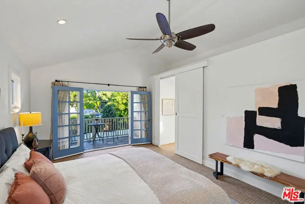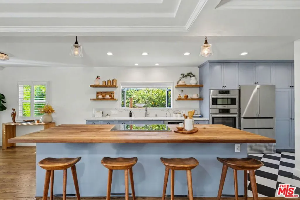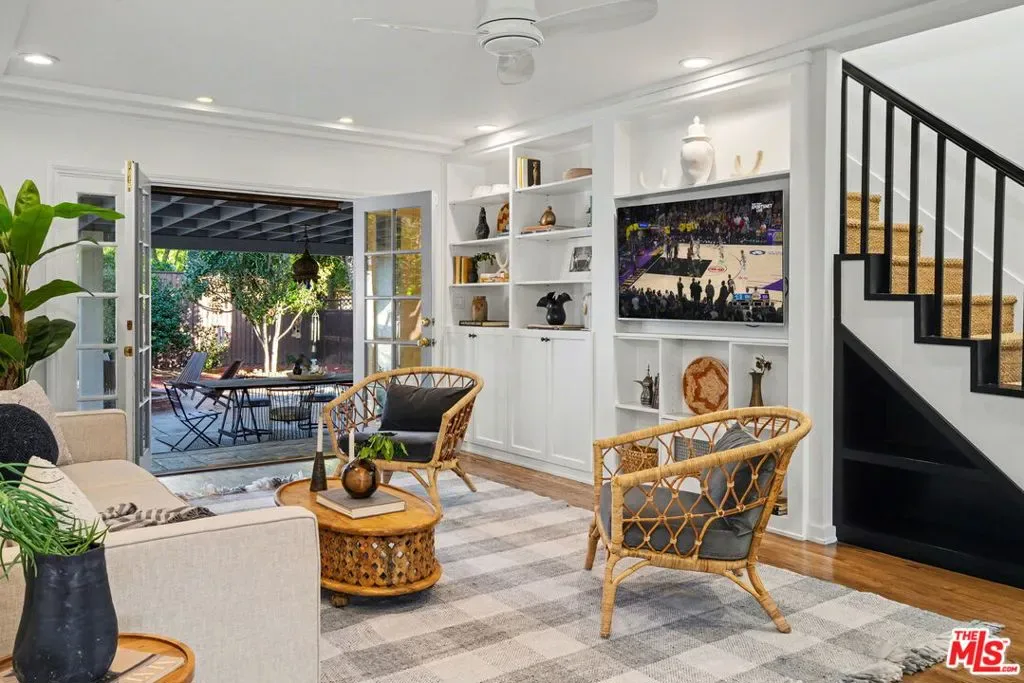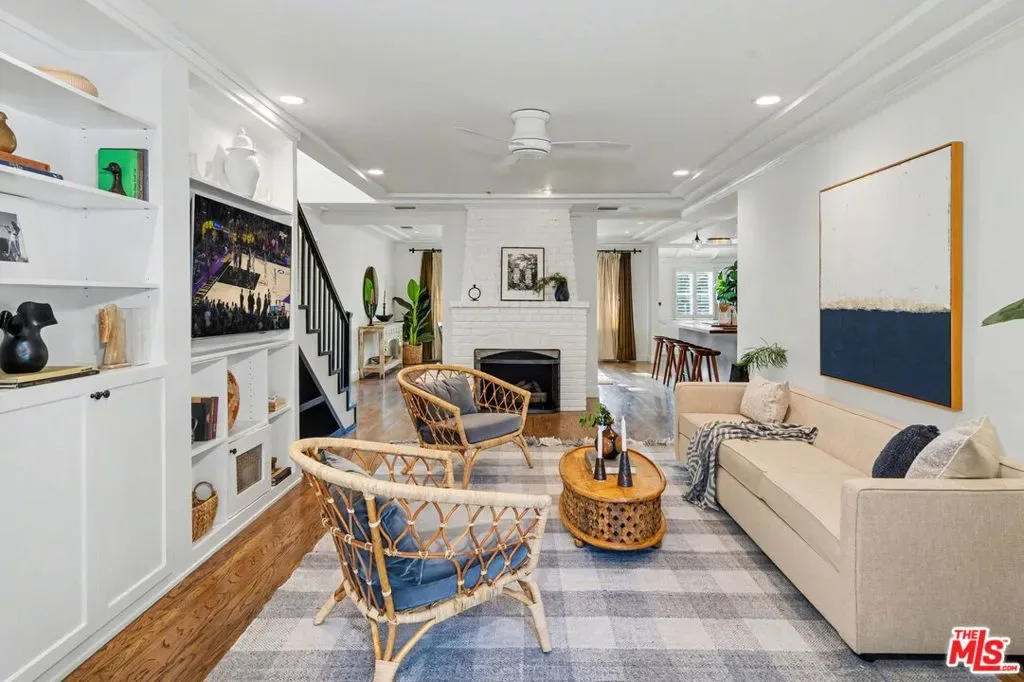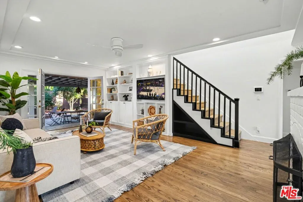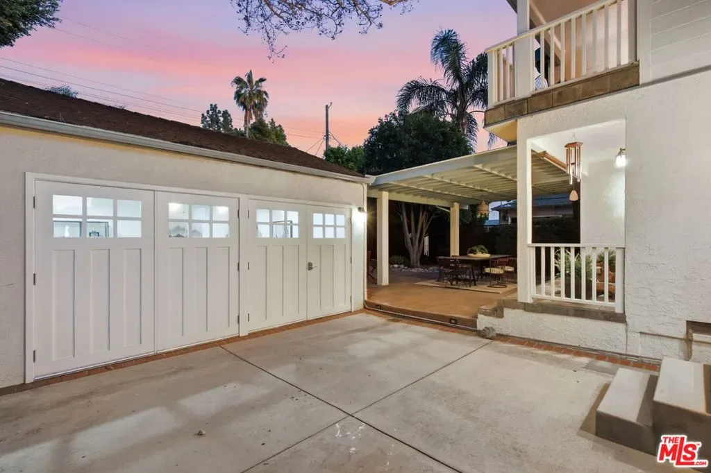 Expanded Traditional Valley Village home set on an expansive 8,100 sq ft lot, thoughtfully renovated to combine timeless character with modern conveniences and a highly flexible floor plan. This beautifully designed 3-bedroom, 3.5-bath residence blends relaxed California living with organic warmth and thoughtful functionality. The welcoming formal entry introduces the home’s warm and inviting interiors, leading to a beautifully renovated chef’s kitchen designed for both practicality and entertaining. Appointments include a maple butcher block island with counter seating, quartz countertops, Bosch appliances, abundant cabinetry, and a convenient adjacent laundry and storage room. The dining room, highlighted by an elegant tray ceiling, shares a striking dual-sided fireplace with the comfortable den, which includes custom built-ins and a charming brick fireplace. Lovely French doors connect seamlessly to the oversized backyard. Maple-toned hardwood floors, recessed lighting, and thoughtful millwork enhance the main living spaces, creating a cohesive yet relaxed atmosphere. The outdoor setting is rich with mature fruit trees and features a covered patio ideal for al fresco dining, exceptional privacy, and abundant room for a future pool – presenting endless entertaining possibilities. The home’s guest bedroom wing is generously sized and thoughtfully arranged for privacy, with two bedrooms, one offering an en-suite full bath. Upstairs, the primary suite serves as a peaceful retreat featuring vaulted ceilings, generous closet space, an updated bath with a custom vanity and steam shower, and an inviting balcony overlooking treetop views. Adding exceptional versatility, the detached two-car garage has been fully finished with mini-split HVAC, recessed lighting, and custom barn doors, making it ideal as a music studio, game lounge, creative workspace, or potential ADU. Additional highlights include owned solar panels, a backup generator, EV charger, central HVAC, Nest thermostat, and security system. Enjoy convenient proximity to the Valley Village/Laurel Canyon Metro station, North Hollywood High, nearby parks, easy freeway access, and close reach to the area’s vibrant shops, dining, and entertainment. This Valley Village residence presents a rare opportunity to enjoy classic architecture, modern comfort, and adaptable living spaces in a desirable neighborhood setting.
