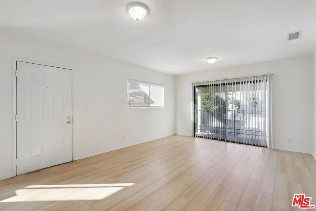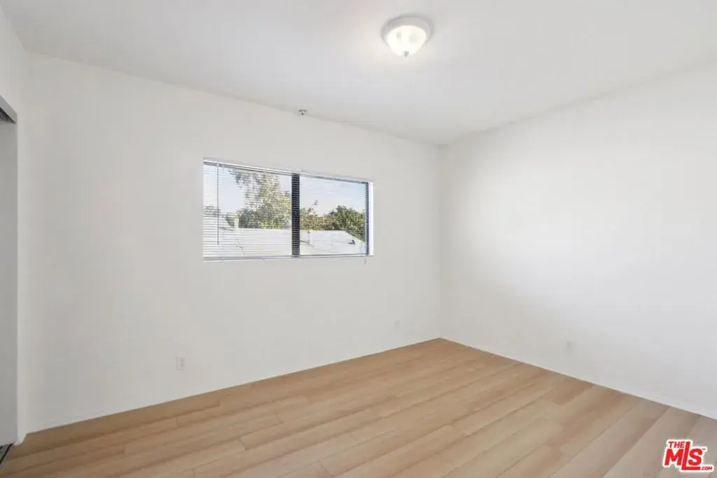 Tucked away on a quiet cul-de-sac in the heart of Valley Village, this turn-key two-bedroom, one-bath apartment offers comfort, privacy, and convenience. Located at the rear of an impeccably maintained four-unit building, this top-floor apartment is filled with natural light and a sense of tranquility. Crisp white walls and light laminate wood flooring flow throughout the spacious layout, creating a bright and cohesive living environment. The airy kitchen features a stainless-steel sink, built-in cutting board, gas stove, and abundant storage. A raised countertop provides space for casual dining or working from home, while a dedicated dining area includes an oversized closet with shelving, ideal for use as a pantry or additional household storage. A hallway closet with built-in shelving offers convenient linen and towel storage. Both bedrooms are generously sized and include mirrored closet doors with built-in shelving and hanging racks for effortless organization. The bathroom is enhanced by a skylight that brings in natural light and includes a shower/tub combination, built-in vanity, and a medicine cabinet for added storage. An oversized living room allows for flexible furniture arrangements and opens to a private balcony, perfect for enjoying fresh air in a peaceful setting. Every window is fitted with blinds, making the home truly move-in ready. Each unit has its own water heater, ensuring uninterrupted hot water, while central heating and air conditioning provide year-round comfort. Additional amenities include dedicated two-car parking at the rear of the property and a conveniently located on-site laundry room. Just minutes from the pool and tennis courts at North Hollywood Park, the YMCA, and dining and coffee shops along Lankershim, this home offers easy access to the best of Valley Village and NoHo living. Sorry, no pets allowed.