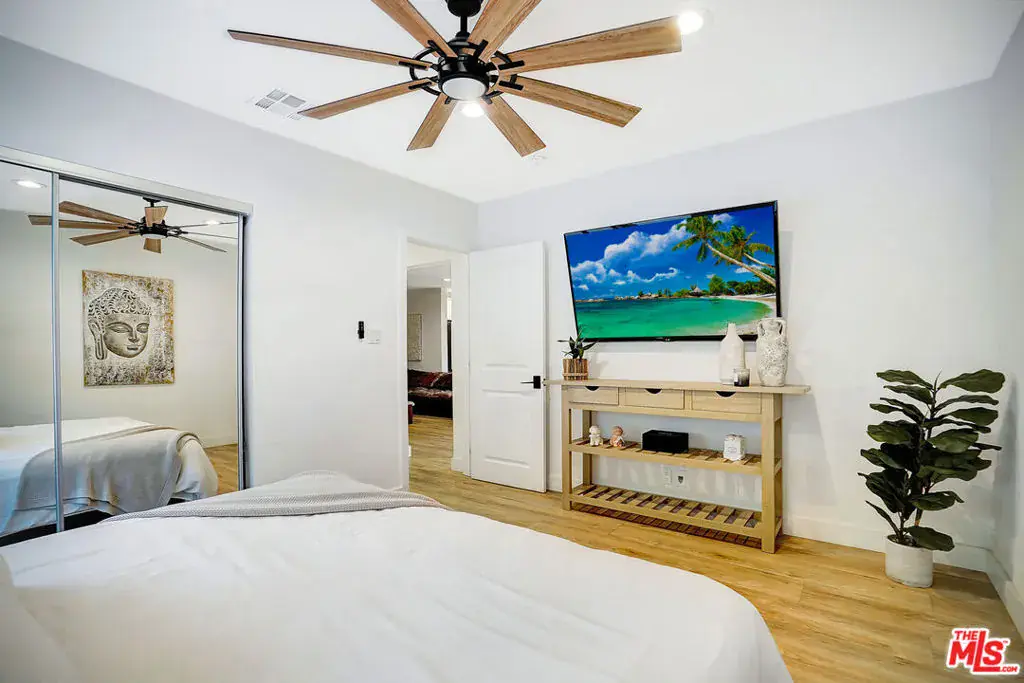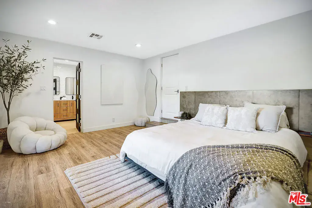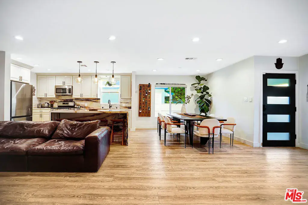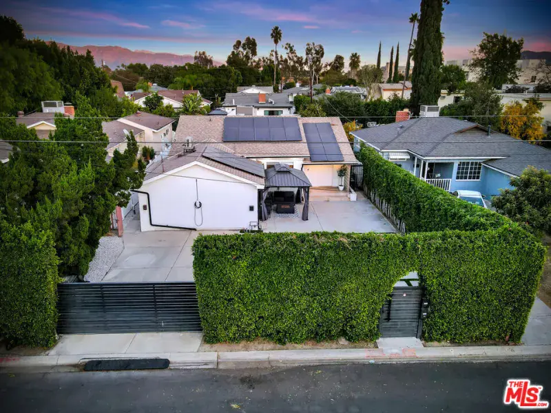 Nestled in the heart of Valley Village, this beautifully remodeled 3-bedroom, 2.5-bath home with a permitted 1-bedroom, 1-bath ADU offers modern comfort, privacy, and flexibility. Situated on a quiet street, the fully gated and hedged property provides ample parking and an inviting open-concept layout filled with natural light. The kitchen features a large center island, stainless steel appliances, and a spacious pantry, flowing seamlessly into the living and dining area ideal for everyday living and entertaining. The primary suite includes a walk-in closet, en-suite bath with jacuzzi tub and double vanities, and direct access to the backyard. The backyard is designed for year-round enjoyment, featuring a new pool with Baja shelf and spa, low-maintenance turf, and a large covered patio for outdoor dining and lounging. The ADU offers its own private entrance and is ideal for guests, extended family, or a home office. Additional features include a solar system, electric car charger, and laundry room. Conveniently located near shopping, transportation, and Houses of Worship.
