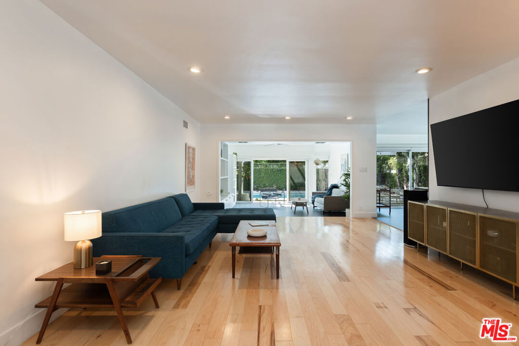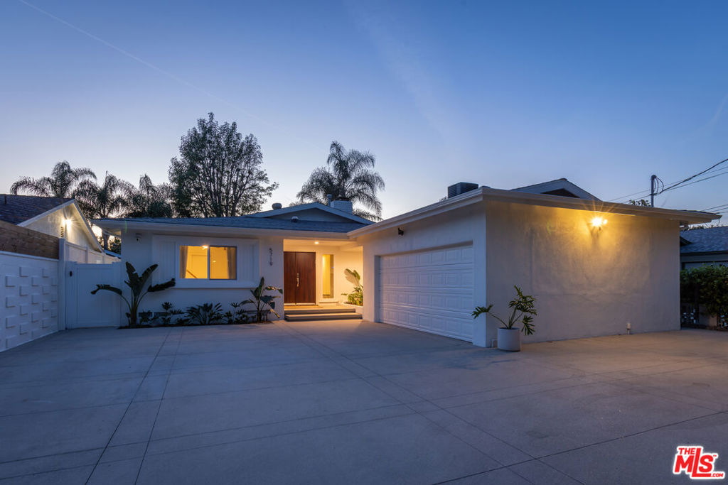 Mid Century Modern Pool House in the Heart of Valley Village. Set behind a private gate with an expansive motor court accommodating up to six cars, this reimagined mid-century modern residence blends iconic architectural character with thoughtful, high-end updates, creating a home that feels both timeless and effortlessly current. So distinctive in both design and atmosphere, the property was even featured on HGTV’s House Hunters. Spanning approximately 2,500SF on a generous 7,000SF lot, this single story property offers four bedrooms, three bathrooms, a formal living room, and an additional sunroom, all wrapped in complete privacy with a newly installed perimeter fence and lush, layered landscaping. The moment you step inside, original 1960s slate and flagstone floors, paired with a curated rock garden entry, set the tone for the home’s distinct architectural style. The expansive living space is anchored by a bold, period-authentic fireplace, warm sculptural lighting and hardwood floors through-out. The living room flows seamlessly into an additional sunroom/family room, complete with custom built-ins perfect for showcasing books, objects, and personal collections. A double door slider opens wide to the backyard, creating the kind of indoor outdoor connection that defines California living. At the center of the home, a fully renovated kitchen pairs clean design with elevated materials, featuring custom Shinoki cabinetry, stunning waterfall Caeserstone countertops, and a suite of luxury Bosch appliances. A generous breakfast bar transitions into the light-filled dining area, which opens directly to an Al ‘fresco dining space framed by a pergola draped in vibrant greenery and blooming purple florals, an idyllic setting for entertaining or everyday living. The backyard is a true showpiece, thoughtfully designed for both relaxation and entertaining. A large heated pool, inviting fire pit lounge, and multiple areas for gathering are framed by mature King palms, lush creeping fig, and a striking art wall that channels a distinct 1960s Palm Springs sensibility, bringing both character and privacy to the setting. The large primary suite is thoughtfully positioned with direct access to the backyard, dual closets, and an en-suite bath featuring a soaking tub. Two additional bedrooms share a beautifully updated bath, while the fourth bedroom offers its own bathroom and separate entrance, ideal for guests, a home office, or flexible living arrangements. Additional features include central HVAC, updated plumbing, 200amp electrical panel ready for future upgrades such as an EV charger or solar, an upgraded sewer line, and a spacious two-car garage. Ideally located in Valley Village, this home is set within a charming neighborhood of multi-million dollar residences, where families stroll the tree-lined streets, neighbors walk with their children, and a true sense of community is felt. Enjoy close proximity to houses of worship, beloved local restaurants, shopping, and easy freeway access, offering both everyday convenience and seamless connection to the best of Los Angeles. A rare offering that captures the essence of mid-century design with modern livability.