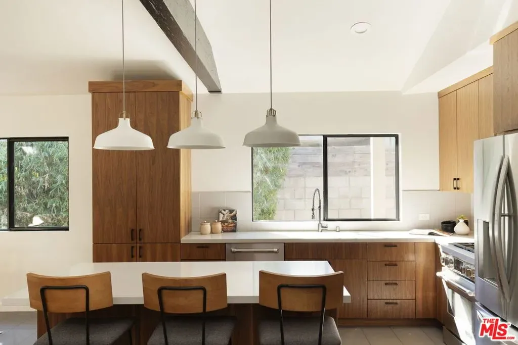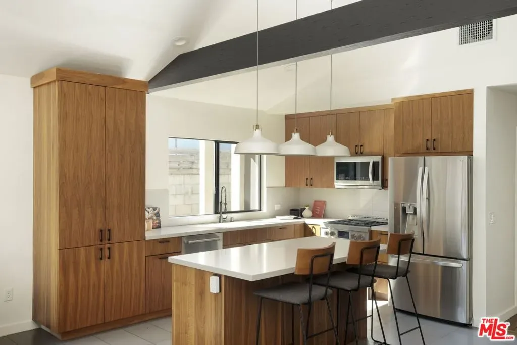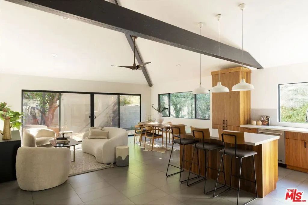 Reimagined, modern, and thoughtfully upgraded, this turnkey home blends elevated design with smart functionality. A dramatic open-concept layout brings the kitchen, dining, and family room together under vaulted ceilings with exposed beams and a stunning 16-foot sliding glass door that opens seamlessly to the outdoor living spaces perfect for entertaining or relaxed everyday living. The spacious primary suite is a true retreat, featuring soaring vaulted ceilings, a walk-in closet, private outdoor access, and a sleek, spa-inspired bathroom with floating dual vanities and a curb-less walk-in shower with infinity drain. The former kitchen has been repurposed into a practical laundry and mudroom with direct access to the backyard and garage ideal for busy lifestyles. Recent improvements enhance both comfort and efficiency, including two owned Tesla Power walls, Tesla solar panels (currently on a rental system with transfer or buyout options available), a tankless water heater, august mobile locks, and seamless gutters bringing modern peace of mind and long-term utility savings. Outdoors, the property shines as a private sanctuary. Drought-tolerant native landscaping creates a serene, low-maintenance environment, complemented by a modern redwood like privacy fence and custom steel gates. The backyard offers multiple decks, mature fruit trees, bamboo screening, a gas fire pit, and soothing water features perfect for quiet evenings or hosting friends. A detached modern studio/office provides an ideal work-from-home, creative, or fitness space. A newly expanded two-car garage with a striking glass and metal door completes the home’s contemporary appeal. A rare blend of design, sustainability, and lifestyle this is Southern California living at its best. **Check out the virtual video tour as well!**