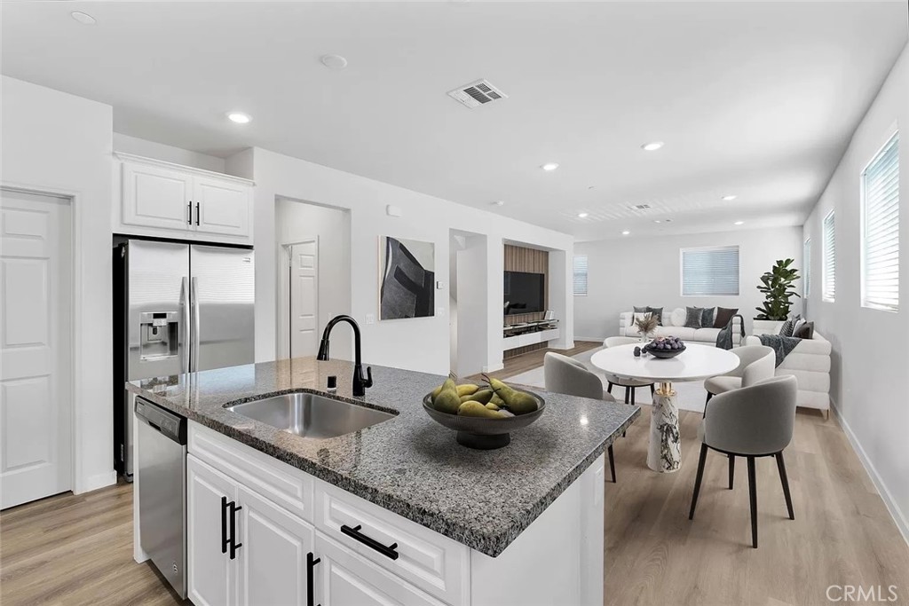The second floor offers a bright open-concept living area ideal for entertaining, with a kitchen featuring stainless steel appliances, an oversized walk-in pantry, and seamless flow into the spacious living room with a convenient powder room.