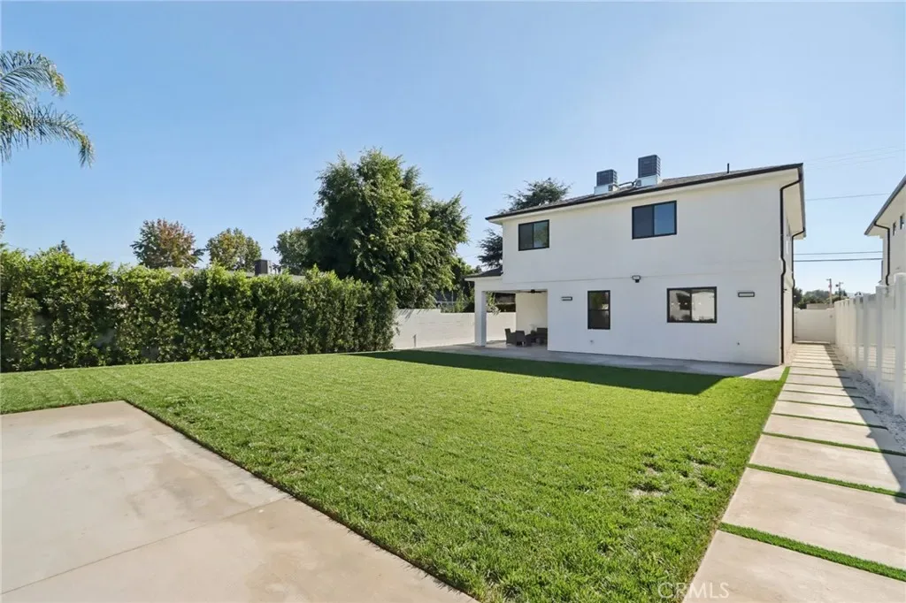 As you step outside to the backyard, you’ll find a lushly landscaped lawn, covered patio and room to add an outdoor BBQ area. At the end of the lot, is a 1,137 square foot ADU with its separate address, (14927 Vose St.) which includes 3 bedrooms, 2 bathrooms, 10-foot ceilings, a thoughtfully designed kitchen with plenty of cabinets for additional storage, Samsung appliances and a dual laundry setup tucked away in a closet. Offering ample privacy and space, the home is ideal for a multigenerational living or for additional income.