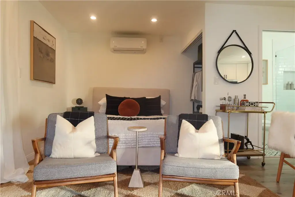 Discover this beautifully designed ADU offering the perfect blend of modern comfort and privacy in the heart of Lake Balboa. Thoughtfully curated with designer touches and finishes, the open-concept layout includes a cozy living area, stylish dining nook, and a sleeping space that feels both intimate and bright. The kitchen features quartz countertops, white shaker cabinetry, stainless steel appliances, and a subway tile backsplash, creating a clean, timeless aesthetic and an in-unit washer and dryer.