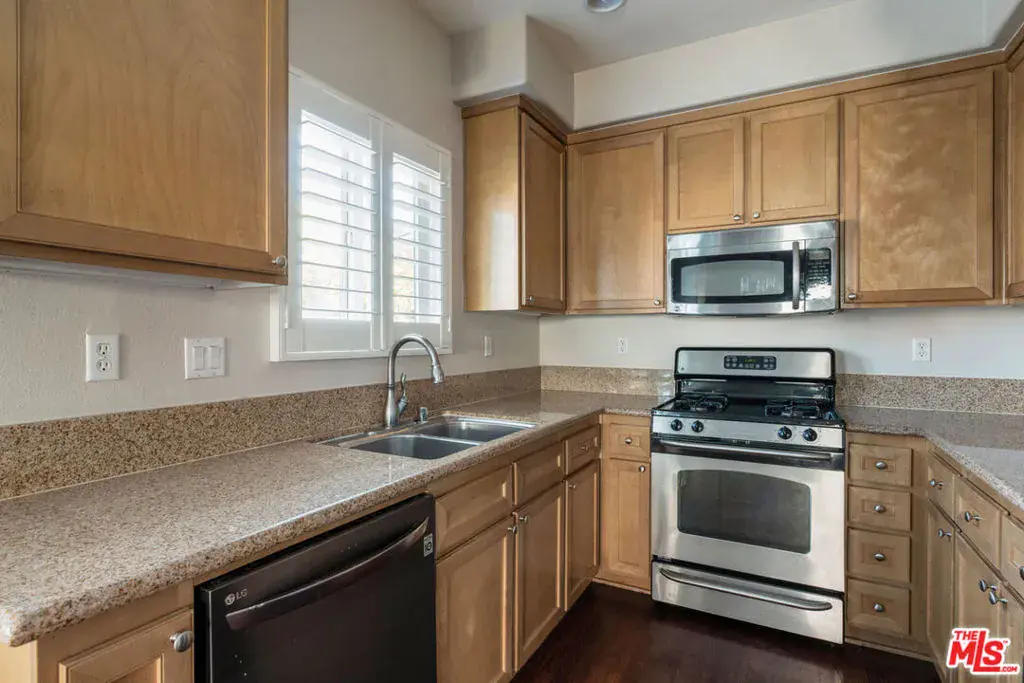 In Van Nuys, this three-story condo presents expansive modern living with a private patio. The first level enjoys direct garage access and a versatile office space; head upstairs to find an open great room with abundant natural light and hard surface floors. The modern kitchen is outfitted with stainless appliances. All three bedrooms are ensuite. The private outdoor space is a serene environment for dining and relaxation. Amenities include stainless appliances, in-unit washer and dryer, and two-car garage, a short drive to local dining and amenities including the Valley Relics Museum, Amapola, Lee’s Coffee House and more.