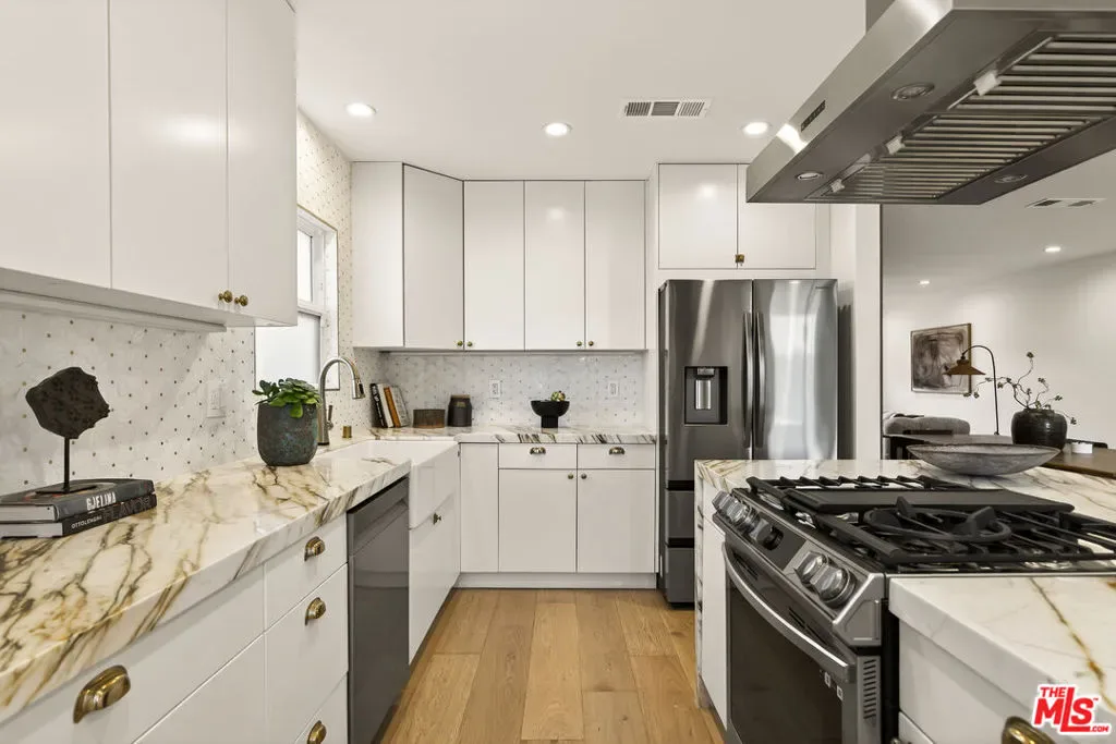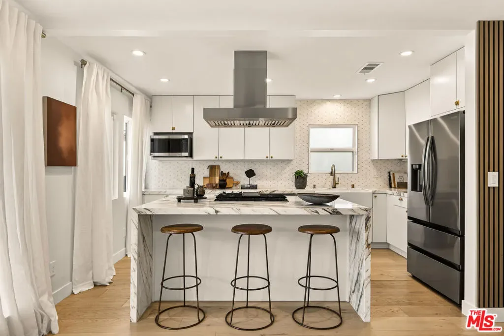 Set at the end of a quiet cul-de-sac, this beautifully appointed 3-bedroom, 2-bath home offers a rare blend of thoughtful design, comfort, and an exceptional Venice location. Clean modern lines are balanced by warm, inviting finishes, creating spaces that feel both refined and easy to live in. Filled with natural light, the interiors unfold with an effortless flow, from the open-concept living and dining areas to a stylish chef’s kitchen and beautifully finished, spa-inspired bathrooms. Every room feels considered, with a calm, understated palette and a sense of warmth that makes the home as welcoming as it is polished. The living spaces are designed for both everyday ease and relaxed entertaining, while the seamless connection to the outdoors adds to the home’s easy, airy feel. Outside, the beautifully landscaped backyard offers a private retreat with plenty of room to lounge, gather, dine, or simply enjoy the quiet surroundings. A long driveway and detached 2-car garage add flexibility and convenience, completing the property with the kind of practical comfort that is increasingly hard to find. Just seconds from Penmar and Rose Avenue, and only minutes to Main Street and Abbot Kinney Boulevard, this home is perfectly positioned near some of the Westside’s most beloved restaurants, coffee shops, boutiques, and neighborhood favorites. Warm, stylish, and ideally located, it captures the best of Venice living.