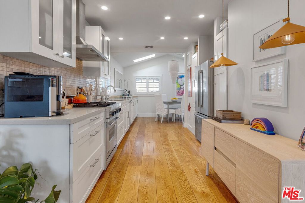 The main house features sun-drenched interiors with hardwood floors, skylights, and a chef’s kitchen equipped with custom cabinetry and stainless steel appliances. Designed for seamless indoor-outdoor living, both the kitchen and primary bedroom open onto a private deck perfect for al fresco dining or morning coffee. The detached guest house offers a private retreat with one bedroom, a newly renovated bath, in-unit laundry, and French doors leading to a lush, maintenance-free turf yard. Situated just moments from the world-class dining and boutiques of Abbot Kinney and only two blocks from the beach, this Cabrillo Avenue gem is Venice living at its finest.