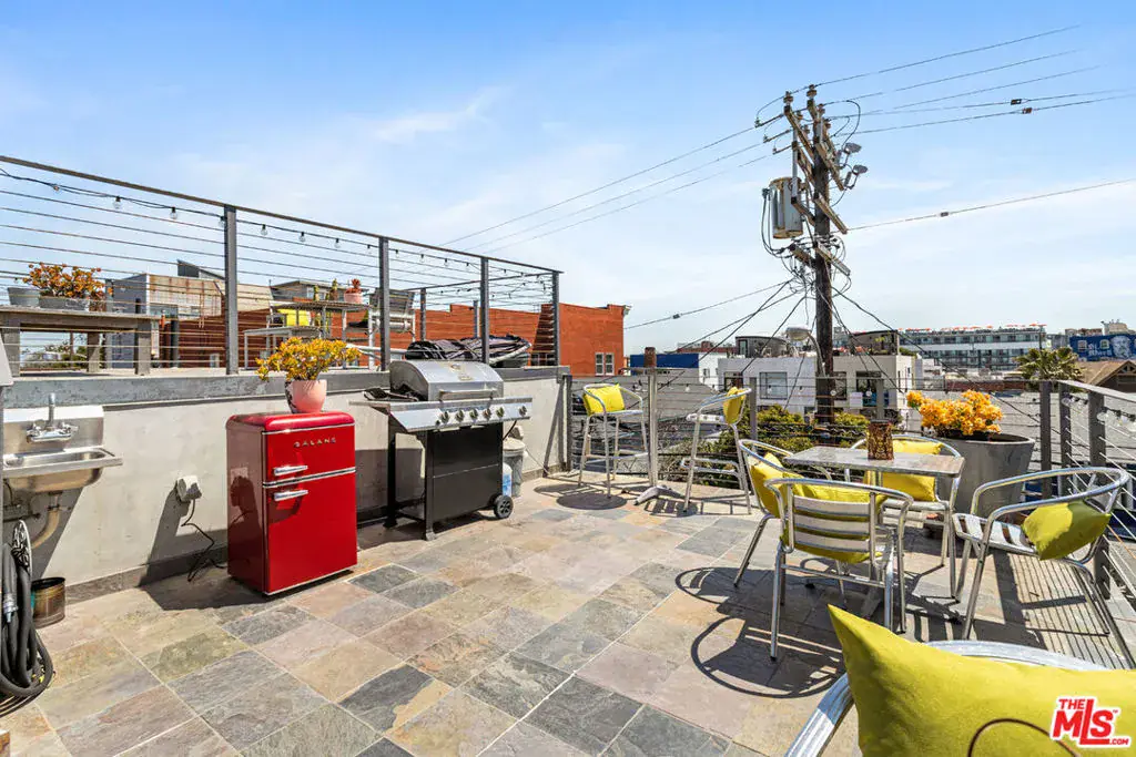Lovely unit in a unique Venice 4-plex just off the beach. A modern style tri level 1 bedroom plus loft which has typically been used as a home office, 2 baths with high ceilings and a huge slide up garage style door, upstairs in the rear of the property. The dramatic shared, two level roof deck is equipped with a sink and barbecue. Relax and check out the 360 degree views of the Santa Monica mountains and ocean, surf, and skate park. Not only is this special property steps away from the sand, but also minutes to Abbot Kinney, Market St and the hip music and restaurants on Windward Ave. including Belle’s Beach House, Hama Sushi, Great White and more. Beach side activities include Muscle Beach, paddle ball/basketball courts, the skate park, the bike path and surfing at the breakwater! 1 parking space included, washer/dryer included. Ask about pets! Tenant pays electricity, trash, and gas.