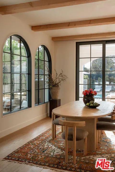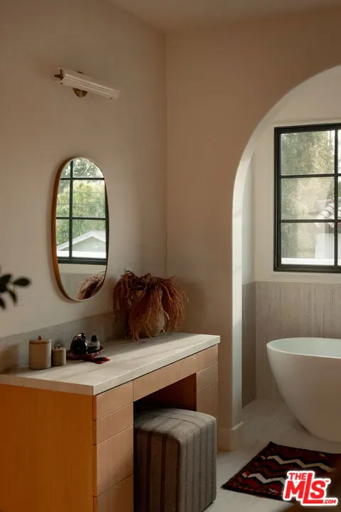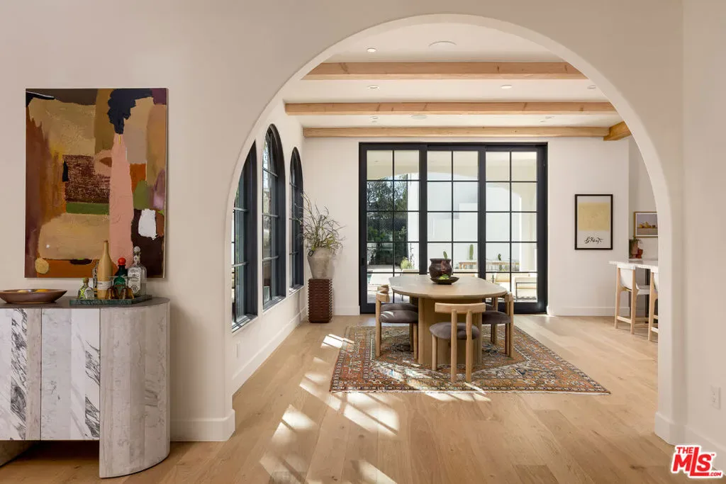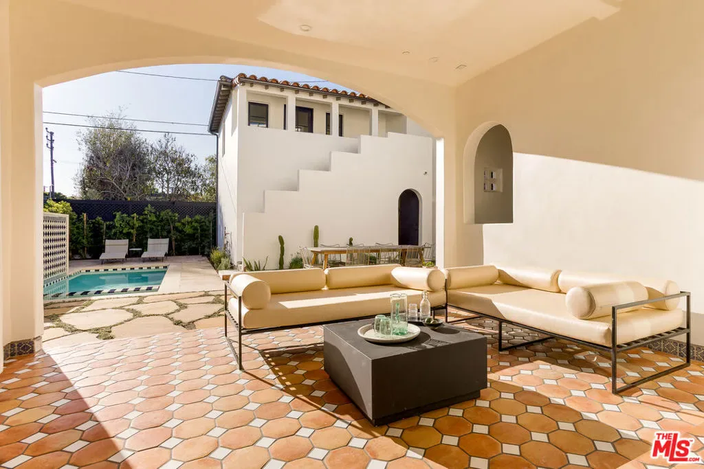 Just completed, this elevated architectural standout from HM/LA Homes is a quintessential California retreat. Blending classic Spanish Colonial craftsmanship with sophisticated modern interiors, this custom residence is a distinctive addition to the prime East Venice neighborhood. Minutes from the beach, Abbot Kinney, and Mar Vista, the expansive 5-bedroom, 5.5-bathroom home features a thoughtfully designed Mediterranean-inspired layout. The property includes an outdoor living room, private backyard, tiled courtyards, pool, hot tub, detached guesthouse, and garage forming a picturesque and functional compound. Spanning nearly 4,000 square feet, the light-filled interiors showcase plaster arches, exposed wood beams, white oak floors and doors, Zellige tile, and Italian stone and marble details throughout. Outdoors, the 5,850 square foot lot is enhanced by lush landscaping, terracotta patios, hand-painted tile accents, and limestone pathways that unify and complete the property.