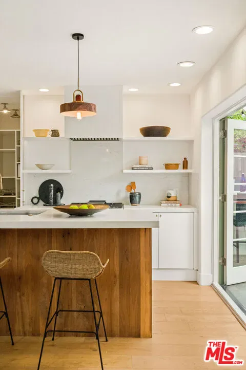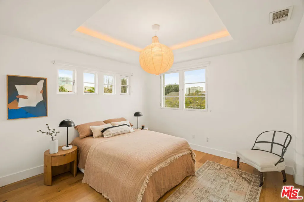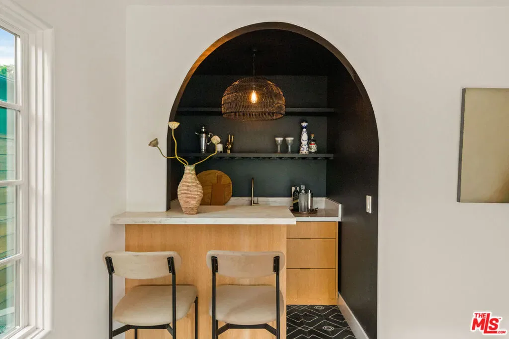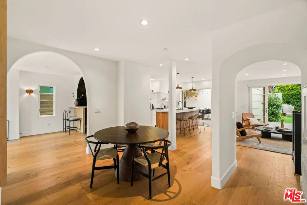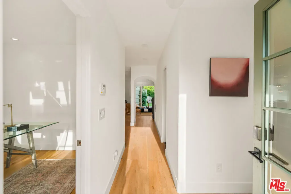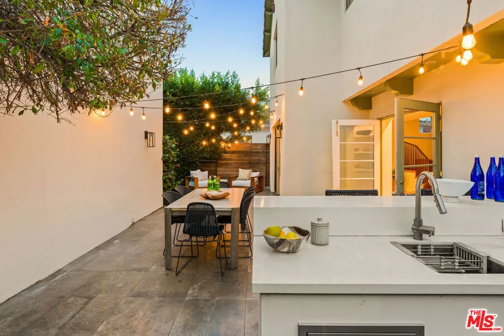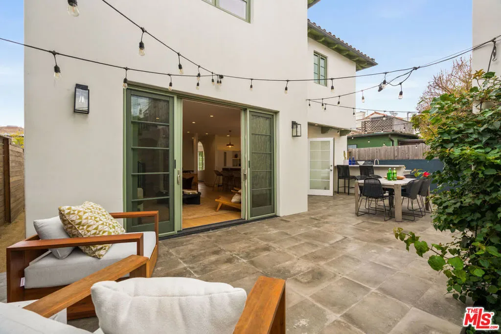 Welcome to your very own sanctuary, where privacy, warmth, and effortless coastal living come together. Beyond the statement wood doors, an intimate entry courtyard framed by mature olive trees instantly sets a vacation-at-home tone. Inside, the home opens into bright, airy living spaces designed for real life and easy entertaining: a welcoming living room, a true dinner-party dining area with its own built-in bar, and a thoughtfully updated kitchen that makes everyday cooking feel elevated. Wide-plank oak floors and organic, natural textures add a grounded elegance throughout. The main level also keeps things beautifully functional with a dedicated office and a full bathroom, ideal for work-from-home days and hosting with ease. Upstairs, the primary suite is a serene retreat with an en-suite bath and dual walk-in closets, alongside two additional bedrooms and another full bathroom, creating the perfect balance of togetherness and separation. French doors off of the kitchen and living room open to the generous backyard, which is made for the way you want to live in California: al fresco dinners, weekend lounging, kids and pets at play, and seamless indoor-outdoor flow. And then there’s the cherry on top: a full, private one-bedroom guest house perched above the detached two-car garage. Completely self-contained, it feels like an “extra home within a home” and delivers the kind of flexibility buyers rarely find. Host friends and family in total comfort and privacy, create the ideal nanny or au pair setup, enjoy multigenerational living with real independence, or carve out the perfect creative studio or work-from-home haven. It’s a standout feature that adds serious lifestyle value and makes this property truly unforgettable. All of it is set on a quiet street, just moments from the sand and surf in Venice and Santa Monica, the marina, and miles of bike paths. Spend your mornings at the beach, your afternoons on Abbot Kinney, and your evenings enjoying the area’s best dining, wine bars, and boutiques. Beautifully finished, exceptionally private, and move-in ready, this is modern coastal living at its best.