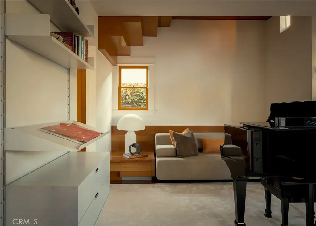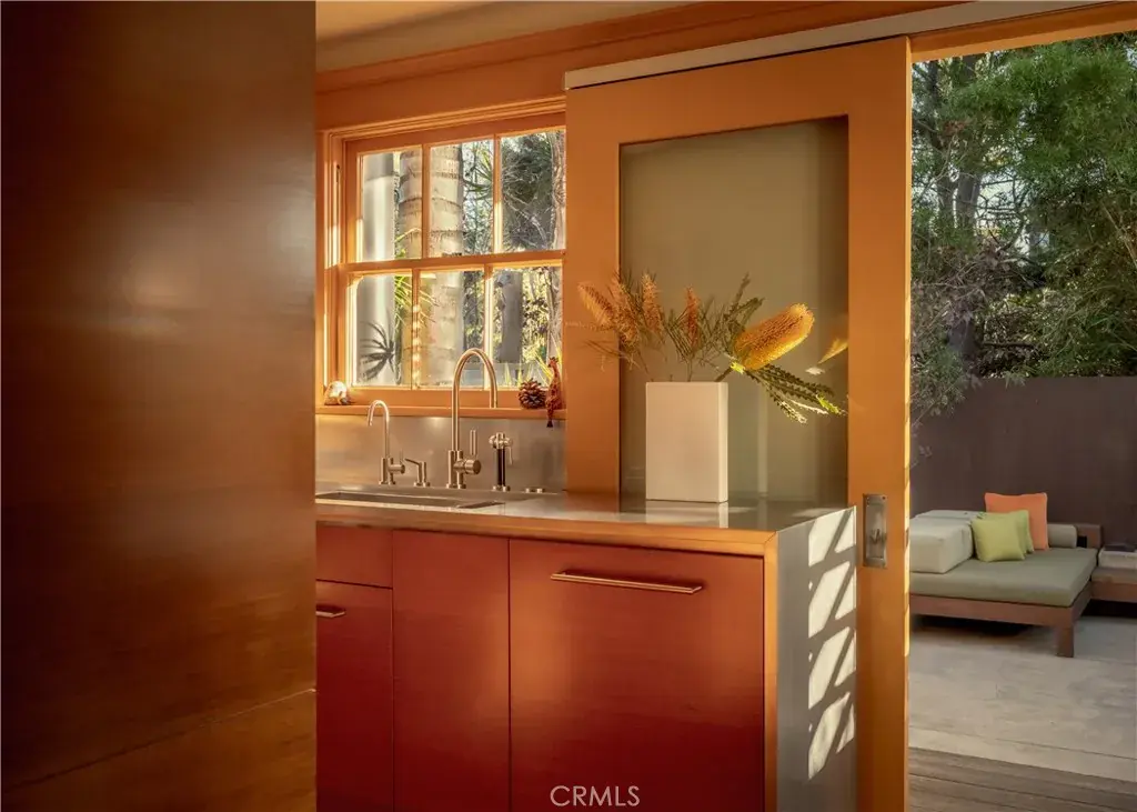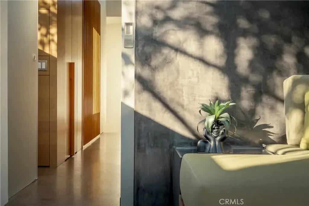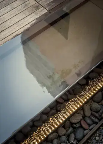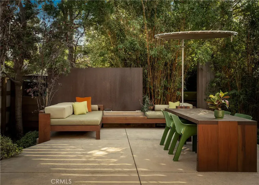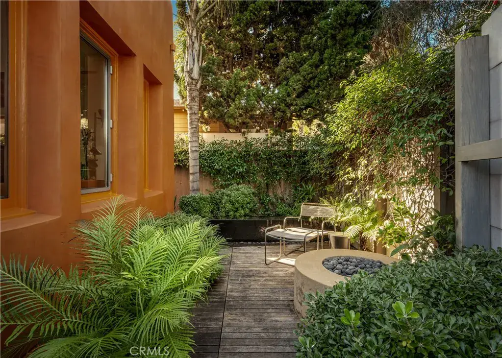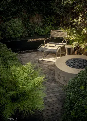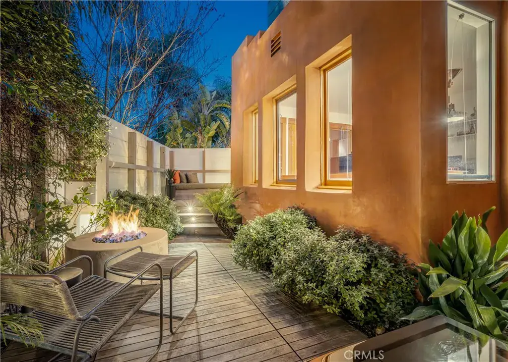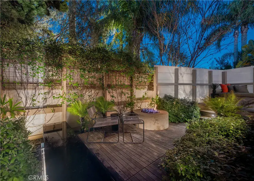 Though modest in scale, thoughtfully composed outdoor living environments extend the residence beyond its interior footprint, inviting year-round enjoyment of Southern California’s climate. The grounds feature multiple intimate settings, anchored by two gas-fired fire pit lounges and a serene water feature—ideal for entertaining and retreat.