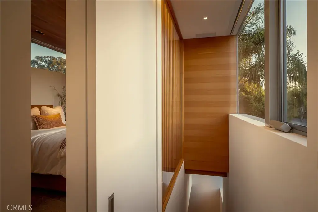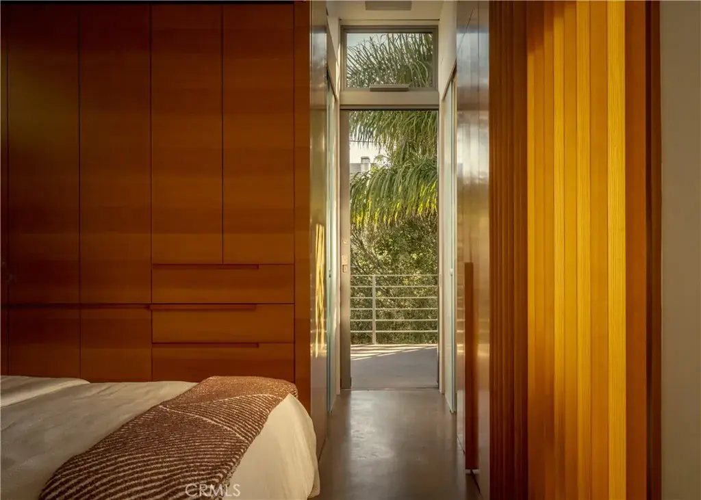 The landscape was designed by acclaimed landscape architect Jay Griffith, transforming the property into a private sanctuary deeply integrated with the architecture. After purchasing the property directly from Shortridge in 2013, the current owner commissioned him to design a second-floor addition. Shortridge created a cantilevered, floating second story and incorporated state of the art sound-proofed windows throughout the home to create a still and serene environment. This true architectural masterpiece was the last project Shortridge worked on before his untimely passing.