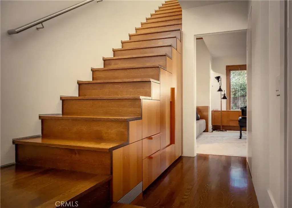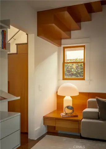 Shortridge created this home as a personal expression of thoughtful design, emphasizing continuity over time and a strong connection between interiors and the outdoor landscape. Warm Douglas fir ceilings with a refined ceiling reveal, custom cabinetry throughout, and a sculptural floating staircase reflect a level of craftsmanship seldom found in residential architecture. The home balances intimacy, light, and connection to the outdoors.