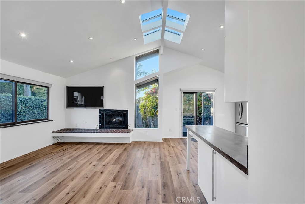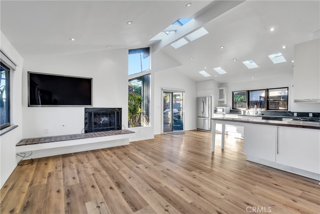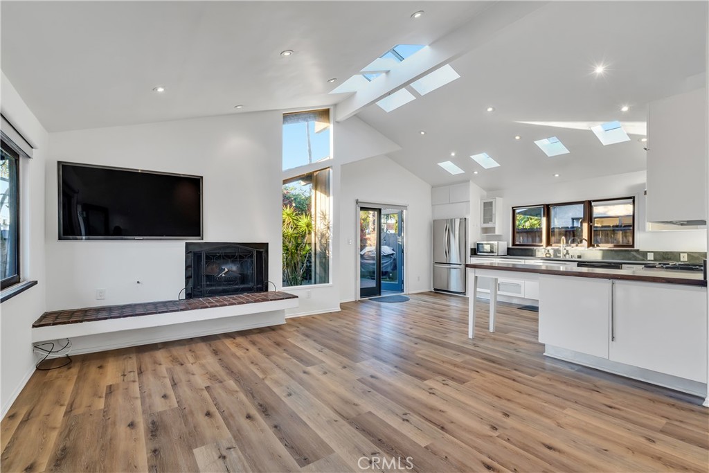 – Open-concept living + kitchen with dramatic ceiling height