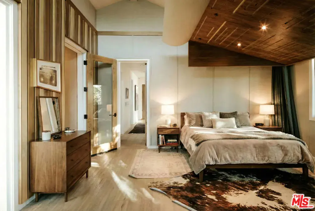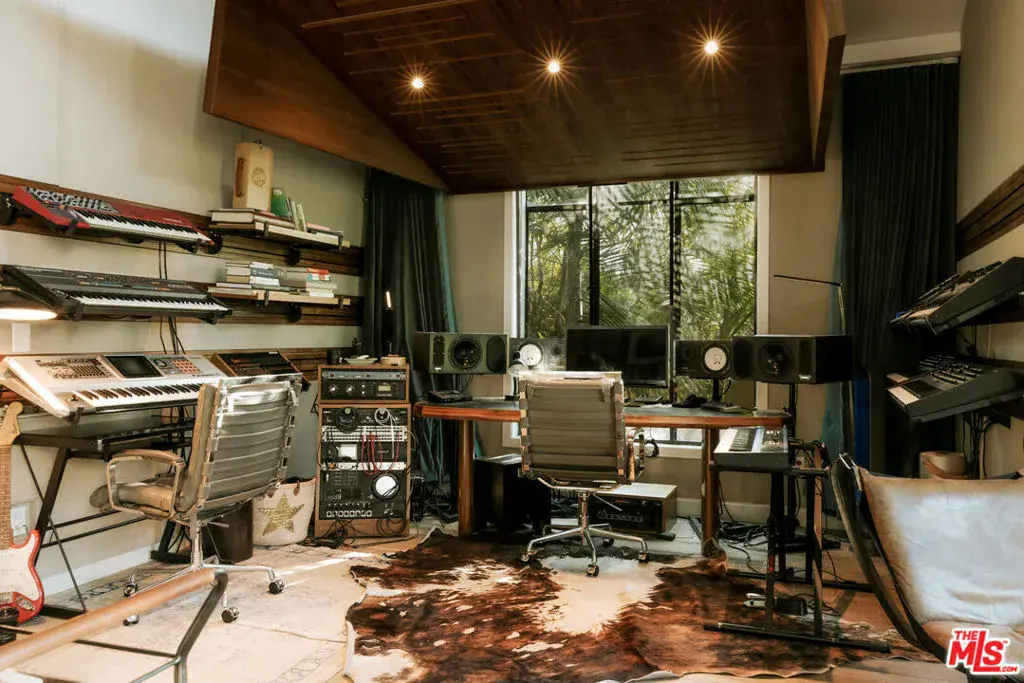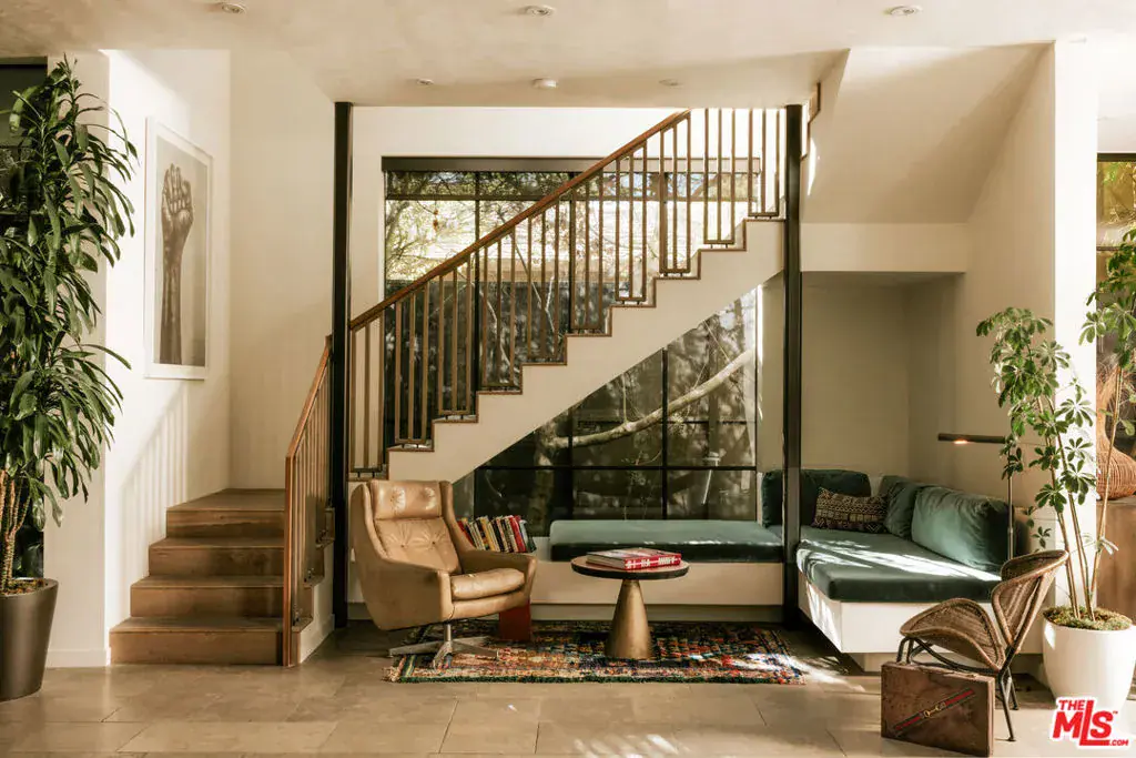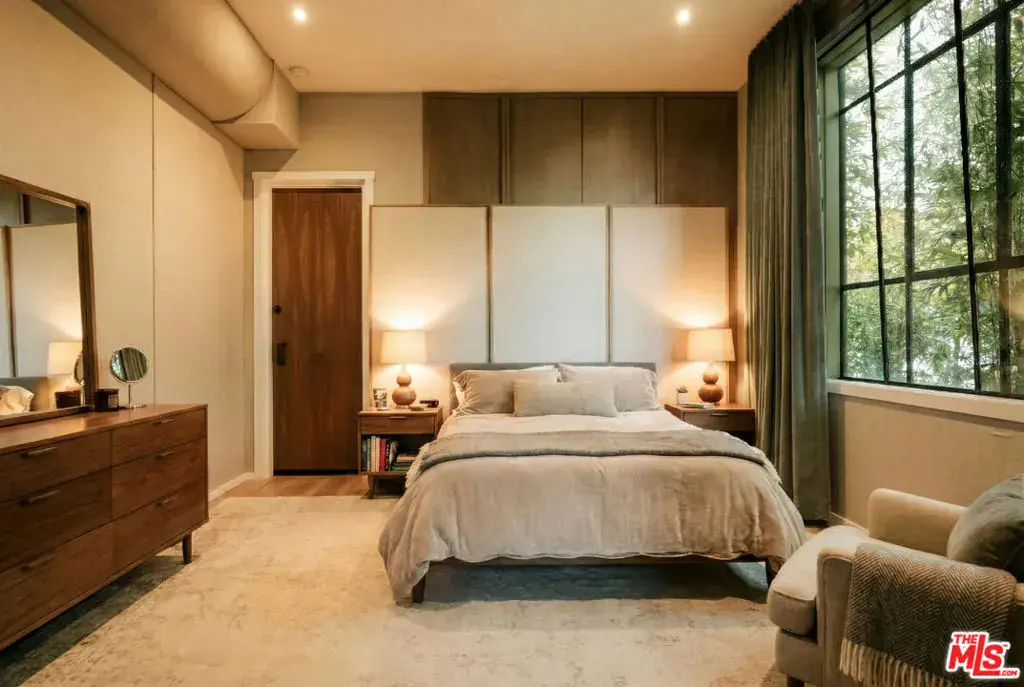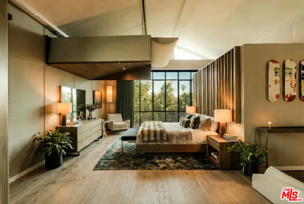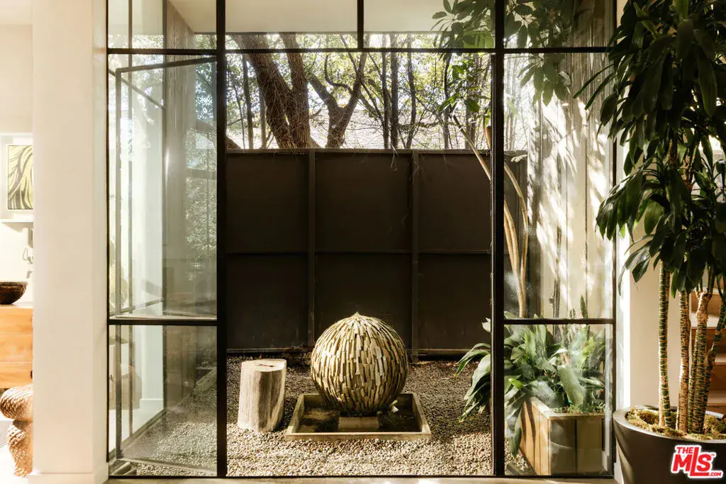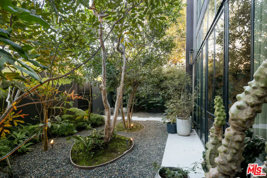 Soaring ceilings, steel-framed windows, natural stone, and warm wood finishes define this striking modern residence on Venice’s most coveted street. Designed with Kim Gordon’s renowned attention to detail and signature Westside aesthetic, the home balances clean architecture with inviting comfort throughout.Beyond the front gate, an enchanting garden path sets the tone before arriving at the front door. Inside, a large, light-filled great room enjoys beautiful views of the manicured gardens, creating a calm, uplifting atmosphere throughout. A glass-enclosed pantry and wine room adds both function and architectural presence, while a dramatic 14-foot glass wall opens wide to mature trees and soft landscaping for seamless indoor-outdoor living.The home features 4 bedrooms and 5 bathrooms, along with beautifully crafted, fully finished wood closets in every room. The primary suite is complemented by a spa-inspired bath with an en suite steam room. “Some images have been enhanced using AI for illustrative purposes.”