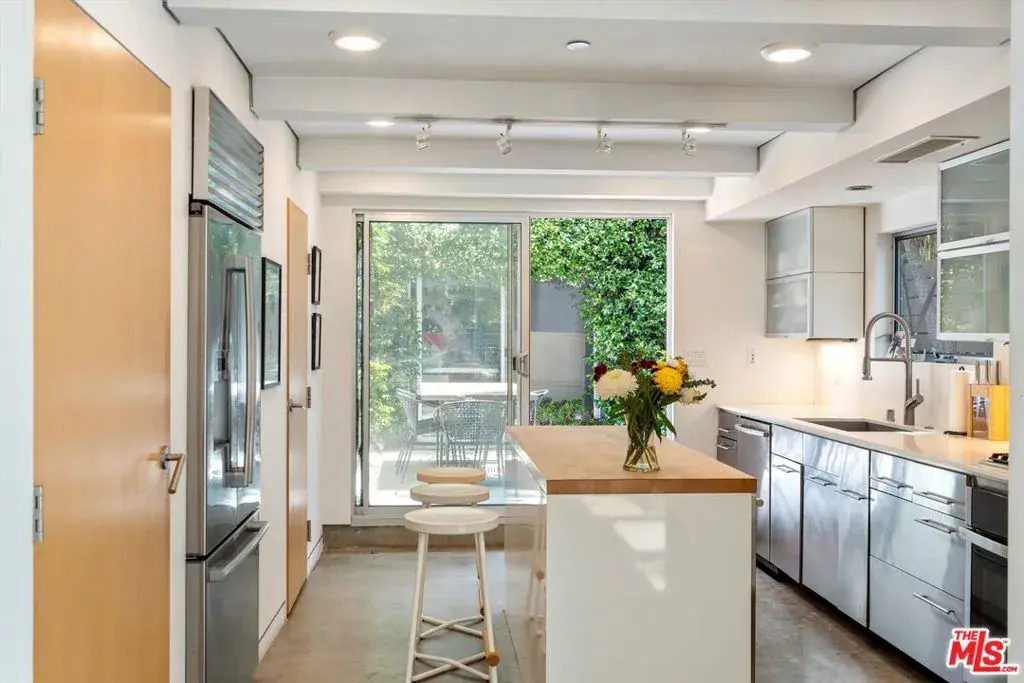 Welcome to this architectural modern home in the heart of Venice, where a private front yard opens to a bright, open floor plan filled with natural light. Floor to ceiling windows and polished concrete floors create a clean, modern feel throughout. The kitchen is designed for both style and function, with a large island and breakfast bar, stainless steel appliances, and direct access to a private patio perfect for outdoor dining. The second level features a comfortable guest bedroom with privacy, while upstairs a flexible lounge works well as a media room or creative space. An adjacent bedroom suite opens to its own private patio, offering a quiet retreat. The primary suite feels open and calm with tall ceilings, a walk in closet, and a spa like bath, plus a private mezzanine for work or downtime. A rooftop deck crowns the home with sunset views and space to gather with friends, while the finished garage doubles as a home gym. Located in a walkable Venice neighborhood close to dining, outdoor activities, and the beach, this home captures the ease and energy of modern Venice living. Photos from previous lease in 2024. Not furnished.