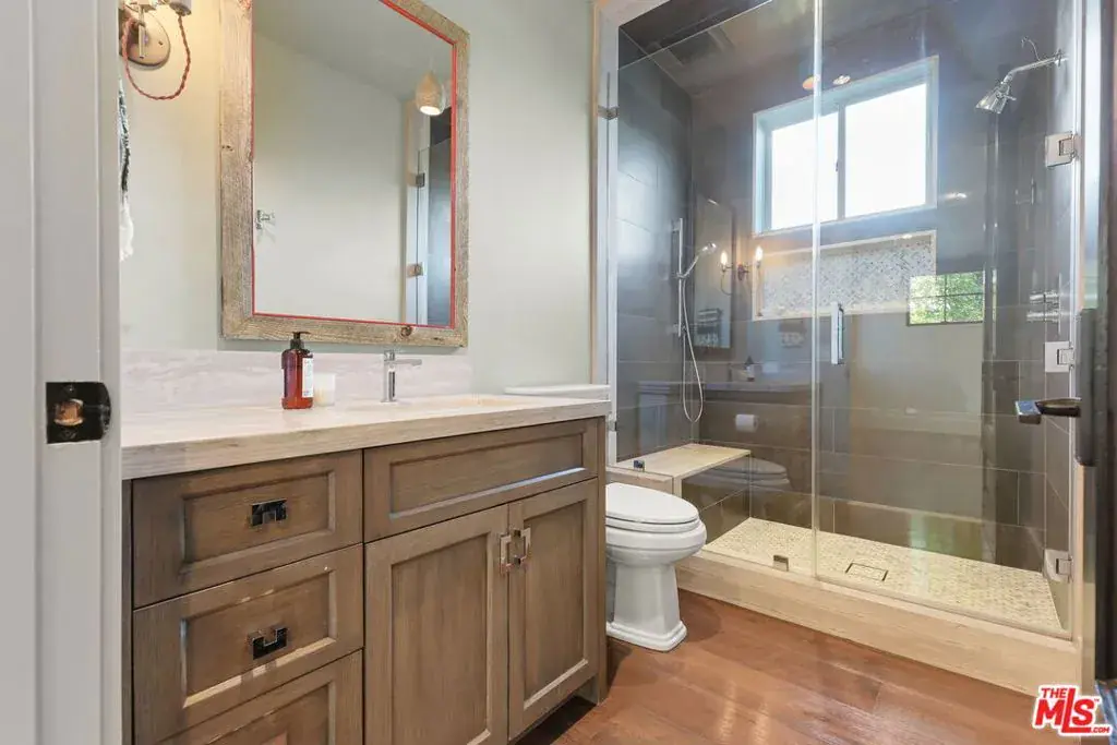 Step into an unparalleled living experience in this one-of-a-kind “Venice Gem” meticulously designed with attention to detail. From the aged Wyoming Snow Fencing to the soaring wood-beamed ceilings, every inch of this estate reflects master-class craftsmanship and sophisticated style. 3 spacious ensuite bedrooms, a built-in workspace, a tranquil yoga loft, and a Chef’s Open kitchen concept with large island, Miele Coffee Machine and Miele Steam and Convection ovens. The grand living room features a 25′ vaulted wood beamed ceiling a Venetian plastered fireplace, and a spacious front deck with abundant natural light. Floor-to-ceiling Fleetwood sliders grace the open dining area, leading to a beautifully landscaped patio with a concrete firepit – perfect for entertaining. The Primary suite is a private oasis featuring its own fireplace, a massive custom closet, and a spa-like bathroom with an aromatherapy freestanding tub and walk-in shower. Enjoy quiet mornings on your own private deck. Notable updates include Custom curtains throughout the home with new remote control blinds on the living windows, with retractable blinds installed on the living room skylights. All lighting in the home has been replaced with programable custom fixtures. Full Sonos stereo “in ceiling” hardwired speakers throughout the entire house. The exterior has a new front gate locking system with security intercom and full property security cameras and upgraded home monitoring system and private hedging, creating a private, secure and serene oasis. With 5-car parking, including a bonus bedroom/ADU with kitchen and bath over the 3-car garage, this property offers both luxury and privacy. Plus, its unbeatable location; the “Best Block in Venice, ” just a block from Abbot Kinney and a short stroll to the beach, makes it a dream for even the most discerning clientele. Don’t miss out on this rare opportunity!