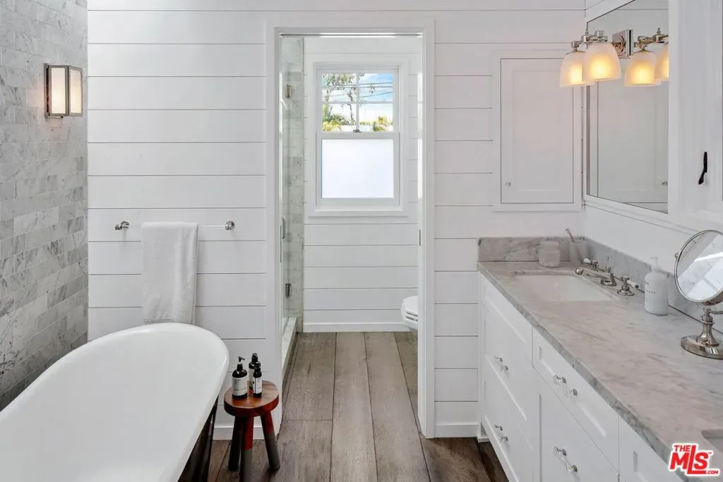 Nestled in Venice on a highly coveted walk-street just blocks from Abbot Kinney and the beach, 821 Nowita Place presents a rare opportunity to reside in a stunning 3-bedroom, 3-bathroom designer-renovated Craftsman home. The fenced front yard immediately captivates with lush landscaping, a stone walkway and an inviting seating area set around a fire pit, all leading up to the striking, Dutch entry door. Sunlit and spacious, this impeccable home boasts effortless indoor-outdoor living, allowing you to bask in Southern California’s year-round sunshine. With a blend of modernity and historical roots, the home features tasteful touches and high-end finishes, including reclaimed hardwood floors, shiplap walls, custom lighting, unique kitchen hardware and home tech like the security system with cameras and coded door access. The centerpiece of the main level, the seamless kitchen opens out to the living areas and features top-tier appliances including a wine fridge. Upstairs you’ll find two bedroom suites, inclusive of the primary, and the laundry area. A serene retreat, the spacious primary suite has high vaulted ceilings, a reading nook with window seat, a fireplace and custom pass-through closet that leads to a marble-clad spa bath with separate shower and soaking tub. Off the rear deck is the lush backyard, offering the ideal outdoor entertaining space complete with a sleek hot tub, dining patio, BBQ grill, and access to two parking spaces. A converted garage with the same finishes as the main home provides flexible living space and may be used as a bedroom, home theater (projector included!), a studio, and more! Just moments from Abbot Kinney and the infamous Venice Beach boardwalk, this peaceful oasis has convenient access to the area’s best dining, shopping and entertainment offerings including the Venice Farmers Market, Erewhon and Gjelina. Don’t miss this rare opportunity to live out your dream California coastal lifestyle!
