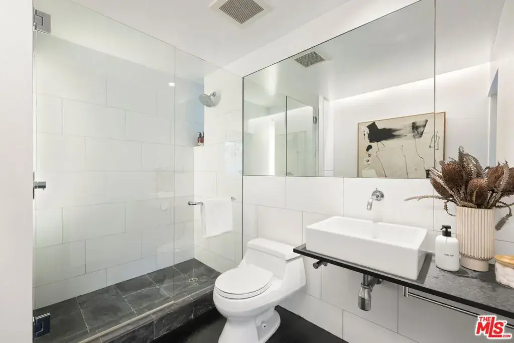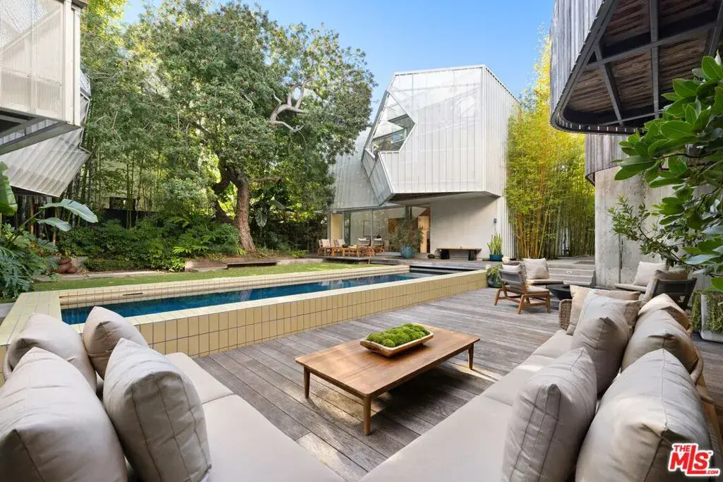 PALMS HOUSE I & II. Step inside this multiple award-winning architectural compound, a dramatic conception of complementary materials that combine to create modern serenity with multiple living structures bathed in sunlight, and a glassy pool ideally situated between. Extensively featured in the May ’22 issue of Architectural Digest, no detail has been spared in this stunning showpiece. A triumph of creative design by renowned architect Kevin Daly, the property was visualized as a multi-generational estate for a contemporary lifestyle. Featuring three separate residences and offering thoughtfully conceived privacy from each one, there are endless possibilities for a seamless work/life balance amid the teeming natural surroundings and just a short walk to the famed shops, and restaurants on Abbot Kinney Boulevard. The main house (Palms II, completed in 2021) spotlights warm wood and screen elements set atop a concrete podium with a broad expanse of glass that provides open sight lines across the property. Complete with 3400 square feet of living space with 4 bedrooms and 3 1/2 baths, details include soaring ceilings, fireplace, polished concrete floors with radiant heating, primary bedroom with private deck and primary bath with steam shower. The second house (Palms I, completed in 2010) places emphasis on framing discrete vistas of trees and sky with apertures arranged from folding perforated metal screens wrapped around the base structure. Complete with 2000 square feet of living space featuring 3 bedrooms and 3 baths, details include soaring ceilings, open dining room, radiant floor heating, kitchen with outdoor dining patio, and a living plant wall designed by Big Red Sun. The ideally positioned guesthouse finishes the third chapter of the trilogy. Artfully executed as a 400 square foot studio, the space provides additional living/sleeping quarters with bath, dual sided fireplace, in-floor heating, and private deck and entrance.The outdoor courtyard is a gathering venue between the spaces, featuring 3 outdoor fireplaces, sport court with NBA regulation hoop, outdoor shower, garden and the pool with retractable cover. Parking for 8 cars (4 for each home and electric chargers in both) and state-of-the-art security systems with cameras complete the practical details of this truly striking and unprecedented property.