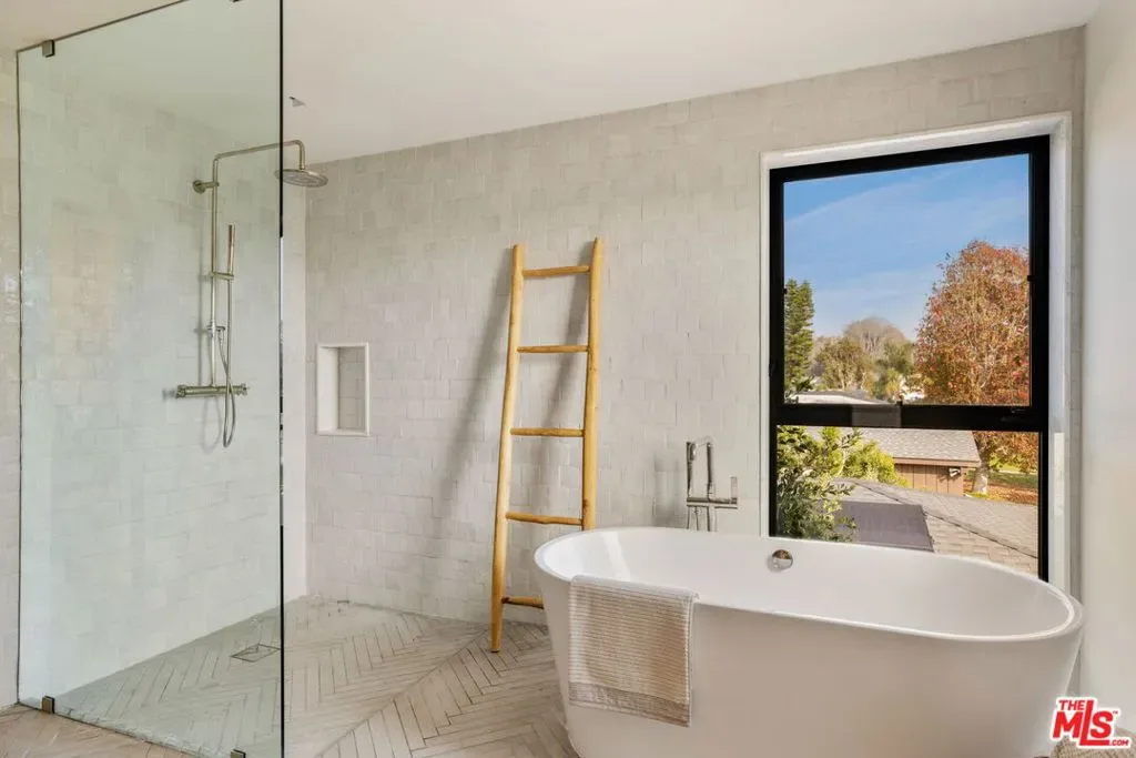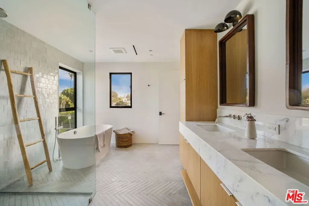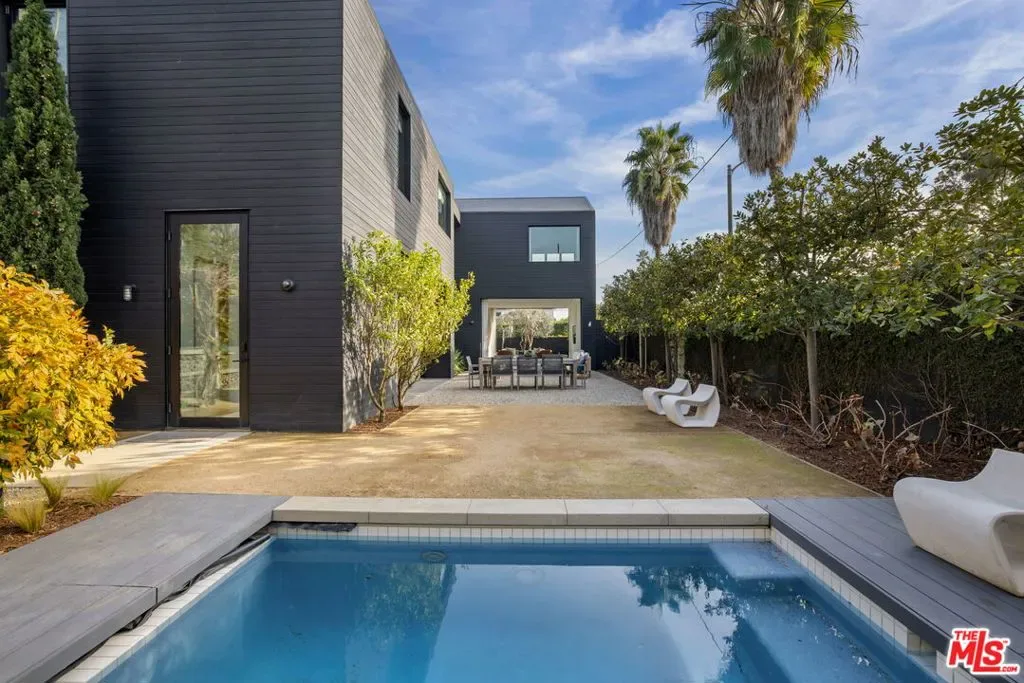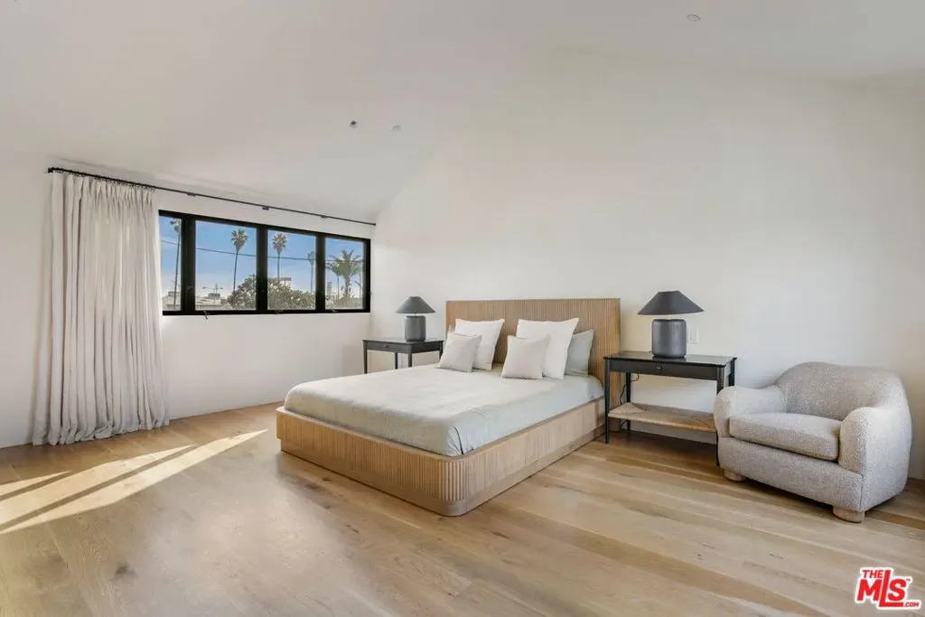 Designed by acclaimed, award-winning AIA architect Peter Vincent in collaboration with Amber Interiors, 901 Flower Avenue is a Scandinavian-inspired architectural residence tucked behind mature hedging in the heart of Venice. Thoughtfully oriented for privacy, this exceptional home blends refined materials, abundant natural light, and seamless indoor-outdoor living.The main residence offers three bedrooms and three bathrooms, anchored by expansive living spaces that open effortlessly to the outdoors through floor-to-ceiling sliding pocket doors. Wide-plank flooring, warm wood detailing, and clean architectural lines create a modern yet inviting atmosphere ideal for both everyday living and entertaining.The kitchen is a true centerpiece both functional and striking featuring a statement Lacanche range, custom cabinetry, a generous island, and a walk-in pantry with added storage and wine refrigeration. Designed to open fully to the courtyard, the layout invites open-air dining with a beautiful indoor-outdoor flow.Upstairs, the primary suite features vaulted ceilings, abundant natural light, a spacious walk-in closet, and a spa-like bath with soaking tub, rain shower, and dual vanities. Two additional bedrooms share a beautifully appointed bathroom and enjoy leafy outlooks.Outdoor spaces are designed for entertaining and relaxation, with multiple zones including alfresco dining, outdoor cooking, a fire feature, and a plunge pool, all surrounded by mature landscaping. A detached guest suite offers exceptional flexibility, with vaulted ceilings, ample light, a Murphy bed, and bathroom ideal as a guest retreat, office, gym, or creative studio.