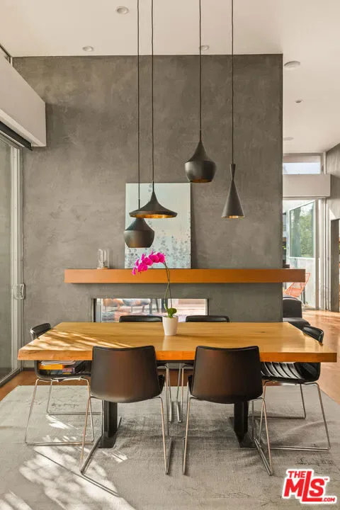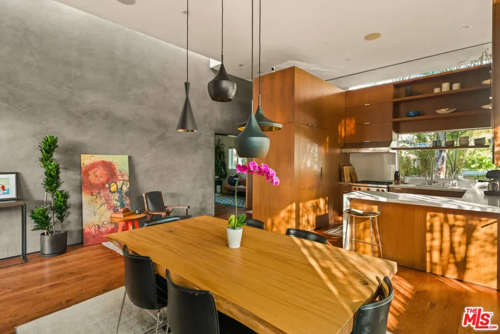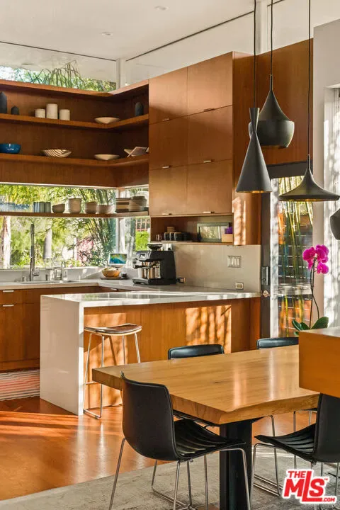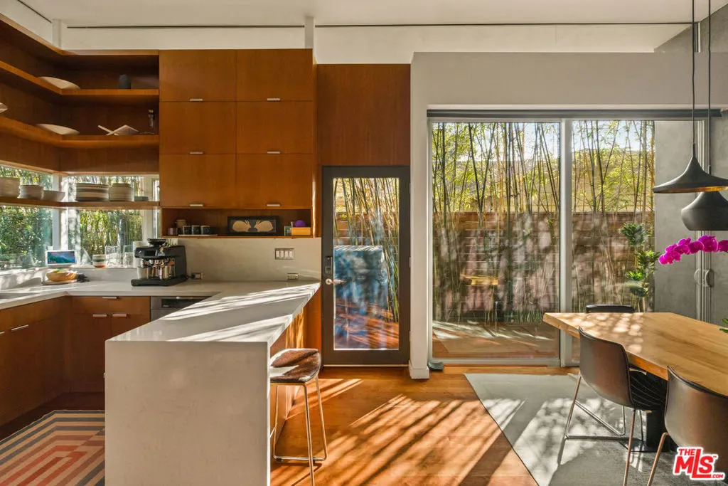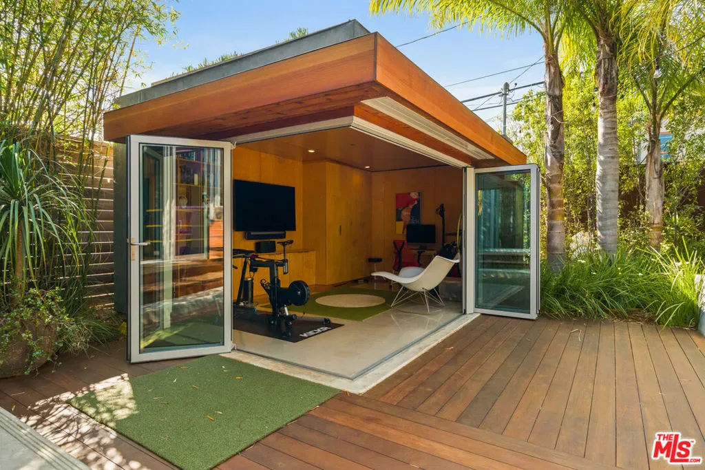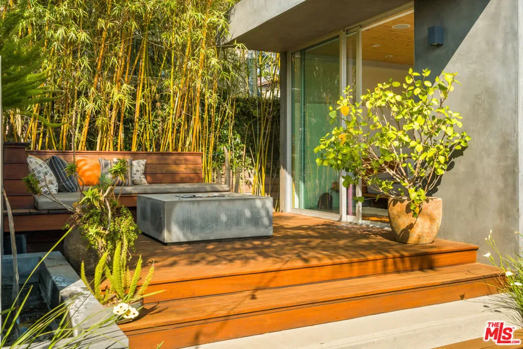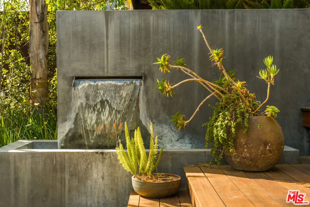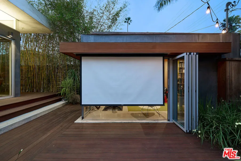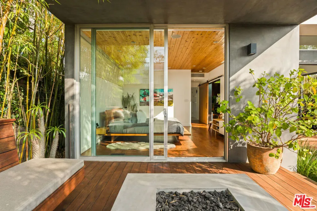 **Offer Deadline 04/06 @ 4pm! ** Tucked behind thoughtfully designed landscaping, this 2-bedroom, 2-bath architectural gem offers a rare blend of warmth, creativity, and modern comfort. The home has been extensively remodeled with a focus on natural materials and clean, contemporary lines, featuring rich, custom floor-to-ceiling woodwork, clerestory windows, sculptural concrete walls, and a beautifully extended fireplace that brings a cozy, grounding presence to the main living space. The kitchen is both stylish and functional, complete with upgraded appliances and statement Tom Dixon pendant lighting that adds a soft, ambient glow. Outdoor living is truly exceptional, with a custom wraparound wood deck designed for gathering and unwinding, including a built-in lounge, gas fire pit, bistro lighting, and a serene concrete fountain. The grounds, designed by Jay Griffith, feel both lush and intentional, creating a private, retreat-like setting. A converted garage adds incredible flexibility, offering custom built-ins, a polished concrete floor, and NanaWall doors that open effortlessly to an outdoor movie screen, perfect for relaxed evenings under the stars. With new electrical and a seamless connection between indoor and outdoor spaces, this home is an inviting sanctuary that feels both elevated and deeply livable.
