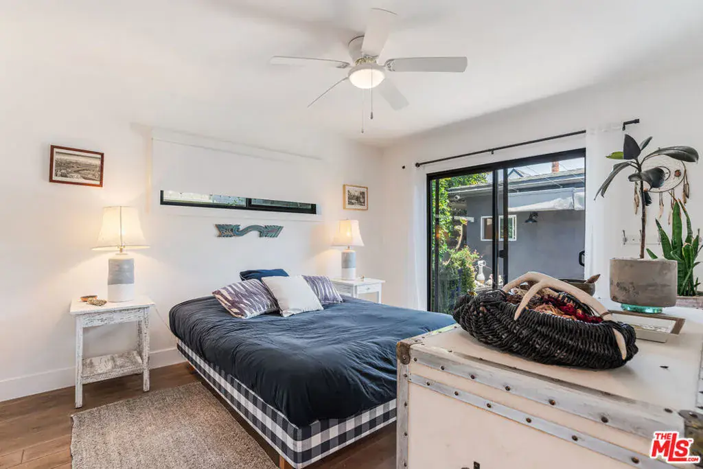 Step into this stunning modern 3-bedroom, 3-bathroom Venice farmhouse with an additional detached approximately 400 square foot bonus room with its own full bathroom, ideal for a guest suite, home office, gym, or flexible living space. Gated and beautifully landscaped, the property offers spacious front and back yards that create a private oasis perfect for kids, pets, and entertaining, featuring mature fruit trees, a dedicated outdoor shower, and a covered patio with pull-down shades for comfortable indoor outdoor living. Inside, the home is filled with natural light from dual skylights and oversized windows that highlight the clean lines and quality finishes throughout. The open concept chef’s kitchen is designed for entertaining with custom Calacatta quartz countertops, a 36-inch Verona range with pot filler, and a 100-plus bottle dual zone wine refrigerator. The primary suite offers a peaceful retreat with custom his and hers closets and a spa-inspired Carrara marble bathroom. The detached bonus structure features vaulted ceilings and air conditioning, offering endless versatility as a guest retreat, studio, or work-from-home space. Additional upgrades include a newer roof installed in 2017, central heating, and air conditioning. Ideally located just moments from Abbot Kinney, Lincoln Boulevard, and the beach, this exceptional home delivers style, functionality, and the best of the Venice lifestyle.