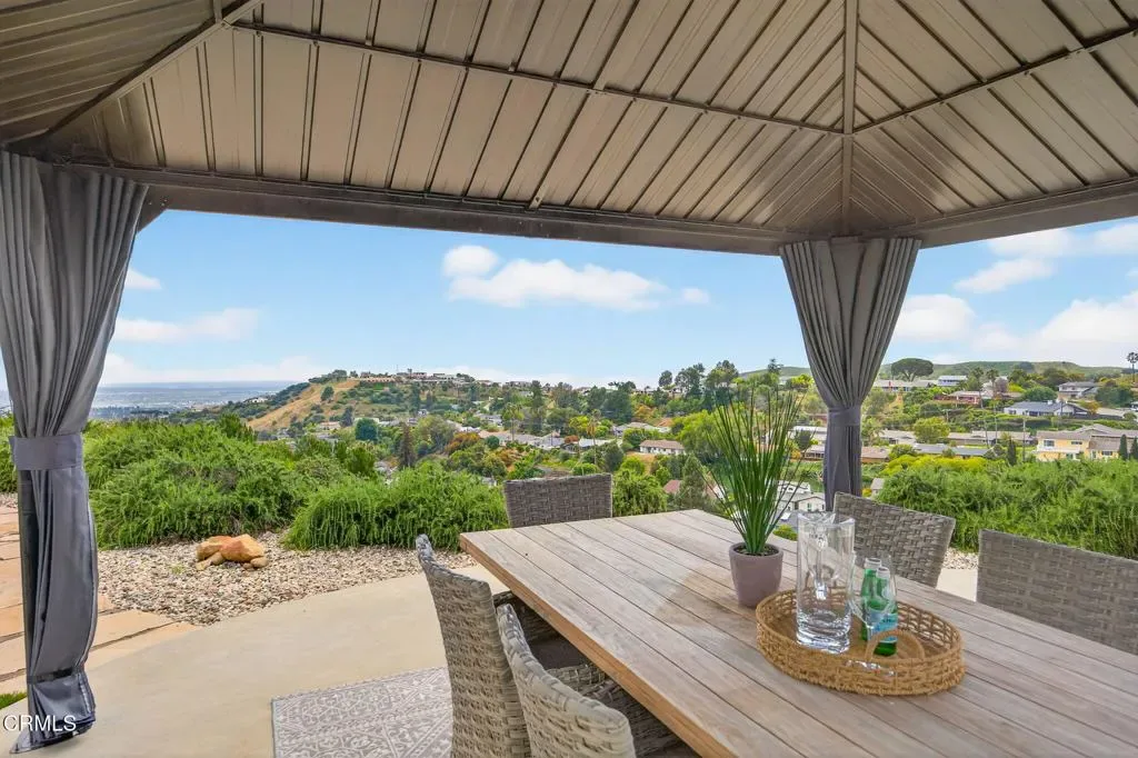 Set on the coveted hillsides of Ondulando in Ventura, this exceptional 4-bedroom, 3-bath residence offers approximately 2,070 sq ft of refined living space plus an enclosed California sunroom, all positioned to capture arguably the most breathtaking panoramic views in the entire neighborhood. From the backyard and sunroom, take in sweeping vistas of the Pacific Ocean, Channel Islands, Ventura city lights, and surrounding hillsides–a truly remarkable backdrop for both everyday living and unforgettable entertaining.Inside, the home has been thoughtfully reimagined with modern upgrades and elegant finishes throughout. Expansive new sliding glass doors and large skylights flood the interior with natural light, highlighting the new premium luxury vinyl plank flooring that flows seamlessly throughout the home.The designer kitchen features custom white cabinetry with soft-close doors and drawers, complemented by a full suite of KitchenAid Elite appliances installed in 2024, including a refrigerator, oven, gas cooktop, microwave, and dishwasher. A stylish coffee bar and wet bar add both convenience and sophistication, while French doors open to the 270 sq ft California sunroom–a stunning space perfectly positioned to enjoy the home’s extraordinary ocean and island views year-round.Bathrooms have been tastefully updated with frameless glass rain-head showers and modern cabinetry, creating spa-like retreats within the home.Beyond the interiors, the property is enhanced by significant system upgrades, including a 2024 Bosch split-system heat pump HVAC, controllable via wall thermostat or smartphone app, a 2024 AquaSure Harmony whole-house water softener, and a Navien NPE-210A2 tankless water heater installed in 2023. New gutters were installed in 2025, ensuring long-term functionality and peace of mind.Step outside to an entertainer’s dream backyard, where a large concrete patio and a 13′ x 13′ Purple Leaf luxury gazebo with zip netting and curtains create the perfect setting to host gatherings while enjoying Ventura’s iconic coastal sunsets. The low-maintenance front yard features artificial turf and drip-irrigated landscaping, while the side yard includes a 2024 Craftsman storage shed. Additional conveniences include a utility sink in the garage.Combining modern upgrades, thoughtful design, and one of the most spectacular vantage points in Ondulando, this home represents a rare opportunity to experience coastal Ventura living at its finest.