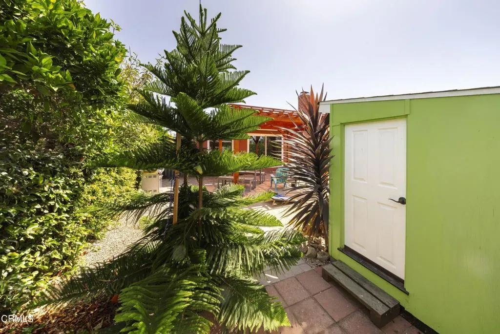 Follow the gently winding, tree-lined streets of Lower College Park to 173 Bucknell, a classic 1950’s 4-bedroom, 2-bath ranch-style home set amidst layers of drought-tolerant plantings and Hong Kong orchid trees. Welcoming and low-maintenance, the environmentally designed xeriscape offers a seasonal refuge for Monarch butterflies and hummingbirds easily observed from the private front porch. Inside, restored solid white oak floors highlight a layout designed for ease and flow. Renovated in 2023-25, this thoughtfully upgraded home now features a spacious kitchen with Koville soft-close cabinetry, quartz countertops, recessed LED lighting, a reverse osmosis filtration system, and an all-new appliance suite. Additional updates include a Carrier 3-ton heat pump HVAC system with NEST thermostat, new ducting and insulation, a heat pump water heater, an ABS private sewer lateral, a smart washer and dryer, a smart irrigation system, and a 200-amp electrical panel. Dual-pane windows and window treatments add to the home’s comfort and efficiency. Pass through sliding glass doors to enjoy a backyard fully enclosed by a block wall covered in greenery, serving as a verdant backdrop to fruiting tangelo, nectarine, lemon, and avocado trees. Relax beneath a custom pergola where privacy and birdsong set the tone and enjoy year-round entertaining on the newly completed paver patio. A backyard shed offers additional storage for garden tools or the perfect playhouse, complete with a window box. Conveniently located just 1 block from Elmhurst Elementary School and a short stroll to Buena High School, Ventura College, and Camino Real Park. Additionally, Arroyo Verde Park with 129 sprawling acres of recreational space – including hiking trails, baseball fields, picnic and BBQ areas, and a recently installed, fully accessible sensory playground – is 1.2 miles away. Easy access to Highways 101 and 126, along with nearby shopping and commercial amenities. Just 10 minutes from Ventura’s iconic beaches, pier, harbor, Botanical Gardens, downtown restaurants, and boutiques. A move-in-ready treasure, 173 Bucknell places daily rituals and coastal adventures within easy reach.