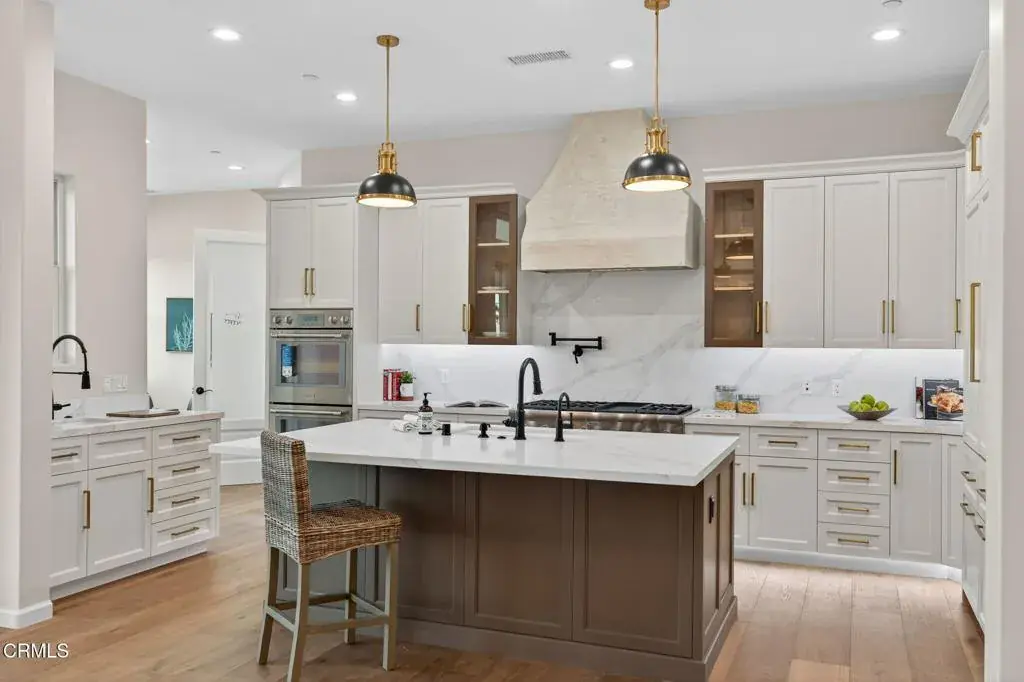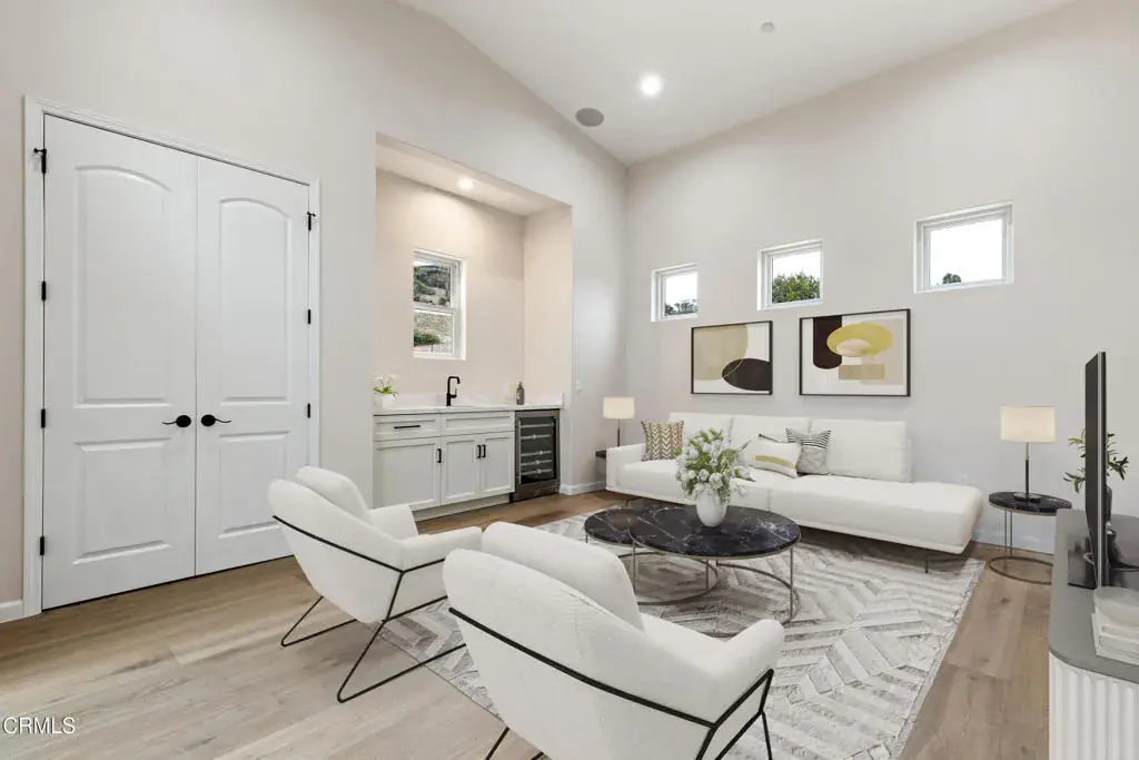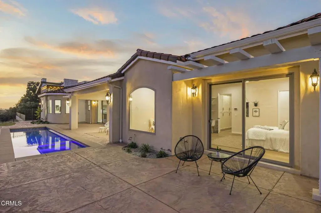 Stunning new construction view home on the sought-after Ventura hillside! This custom build offers 4 bedrooms plus a media room, 3 full bathrooms, a powder room, and has approximately 3,710 square feet of living space – all on one level! Outdoor living with a pool and spa are a few more of the special features to enjoy. With a Mediterranean style, the home was thoughtfully appointed with French oak floors, Thermador appliances in the gourmet kitchen, and wine storage for casual collectors. The large great room with surround sound technology has high ceilings and sliding doors that incorporate indoor/outdoor living. A covered patio for entertaining is adjacent to the pool and spa. The outdoor space overlooks Ventura, providing sweeping ocean, island and sunset views to the north and west. Another feature of the home is that the back bedroom can be used as an ADU with its own entrance, kitchenette and laundry. Green features include owned solar panels and EV charging infrastructure.Come see the spectacular views to the ocean and Channel Islands.