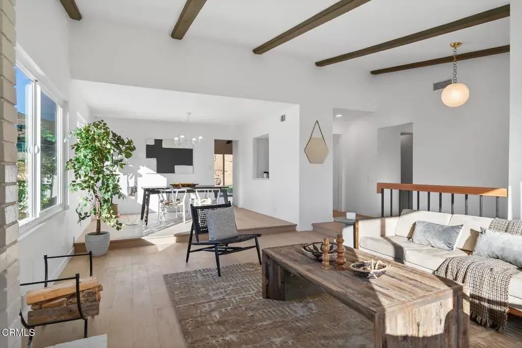 Situated in the coveted Clearpoint community on the Ventura hillside, this impeccably renovated single-story residence is a quiet escape, where modern luxury meets the calm of the coast. Set on a quiet cul de sac, on a generous one-third-acre, the property optimally presents the coveted sense of both open space and privacy. Completely redesigned with a modern coastal influence, the interior blends elevated finishes, natural textures, and neutral tones. As you enter, sunlight pours through expansive windows that frame distant ocean views–reminding you the shoreline is just moments away. The living area, architecturally graced with vaulted ceilings and a spacious open floor plan, is oriented to enjoy the warming fireplace while also capturing a glimpse of the horizon. The fully redesigned kitchen- complete with all new contemporary details including custom soft close wood grain cabinetry, timeless zelige tile backsplash, calacatta quartz countertops, high-end stainless steel appliances, and counter bar- opens to the family room, a bonus entertaining area featuring its own modern fireplace and wet bar. Oversized glass sliders lead directly to the backyard- inviting sunlight and coastal air, while extending the living space outdoors.Down the hall are four well-sized bedrooms, powder room, convenient individual laundry room, and full guest bath- each finished with fresh, modern materials. The large primary suite, situated at the rear of the home, enjoys direct views and access to the backyard, two spacious closets, and a beautifully renovated ensuite with dual vanities and spacious walk-in shower. Outdoors, the expansive grounds present endless possibilities–whether creating a resort-style backyard, or serene entertaining space to take in the hillside setting and ocean breezes. Additional highlights include an upgraded HVAC system, new roof underlayment & tile reset, fresh interior & exterior paint, landscape & irrigation, and new wood fencing in backyard. Conveniently located near award winning schools, fantastic dining, shopping, hiking trails, Arroyo Verde park, freeway access, and just a short drive to Ventura’s pristine beaches.