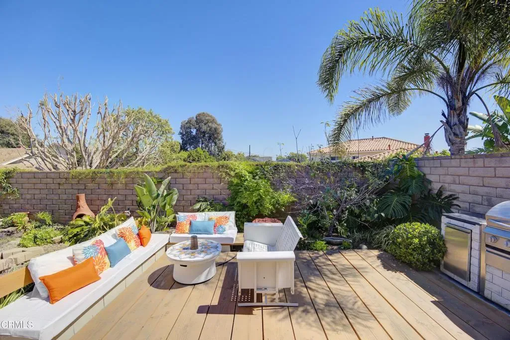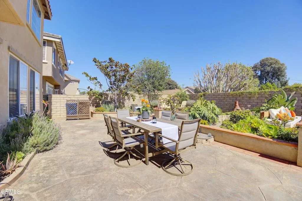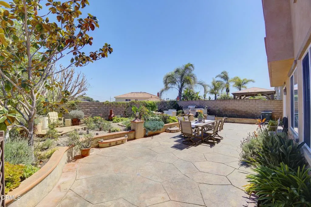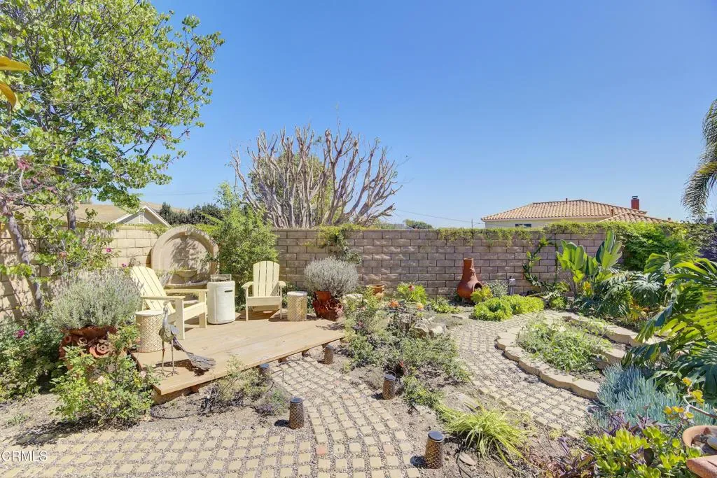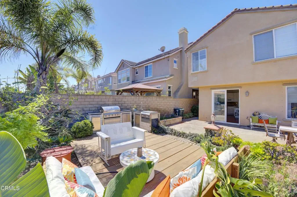 Beautifully upgraded 4-bedroom, 3-bath home offers 2,163 sq ft of thoughtfully designed living space in a highly desirable Ventura location. Built in 2006, this home features an outstanding floor plan with soaring ceilings and clerestory-style windows that provide abundant natural light while maintaining privacy. The gourmet island kitchen showcases elegant white cabinetry, natural slab granite countertops and backsplash, and hardwood plank flooring. Updated appliances include a designer glass-paneled refrigerator (2025), stainless steel cooktop (2022), dishwasher (2022), built-in microwave (2022), and self-cleaning double oven. The inviting living room features a stylish see-through gas fireplace, creating warmth and ambiance between living spaces.The spacious primary suite offers hardwood flooring, high ceilings, and abundant light, along with a luxurious bath featuring an oversized jetted soaking tub, separate shower, dual vanities, and new fixtures. Additional highlights include a downstairs bedroom and bath, interior laundry room with included Washer & Dryer (2024), recessed LED lighting (2026), dual-pane windows, central A/C, tankless water heater (2020), and soft water system (2020).Enjoy a quiet and private backyard with no rear neighbor views, designed for both relaxation and entertaining. Features include a full-width patio with ‘afternoon’ shaded seating, raised garden beds, apple tree, roses, and herbs, and multiple outdoor seating areas. The outdoor kitchen is equipped with a stainless steel BBQ with rotisserie, side burner, sink, and storage. Fire and water features, including propane fire pits and a water fountain, create a tranquil setting enhanced by solar lighting that truly comes alive at night. *Ideally located* in a walkable neighborhood near Ralphs, Trader Joes & additional shopping, multiple dining options, LA Fitness, Montalvo Hill Park, and everyday conveniences, and just a short drive to Ventura beaches, harbor, downtown, and The Collection in Oxnard. This exceptional property combines comfort, quality, and lifestyle in one remarkable offering….Happily with NO HOA Dues!