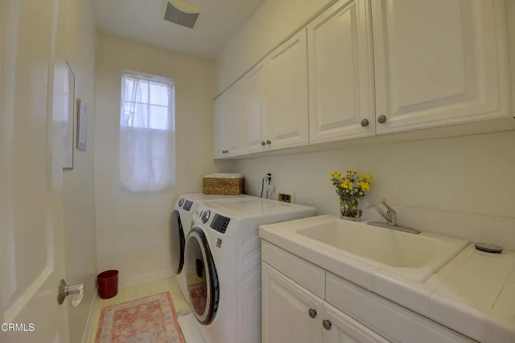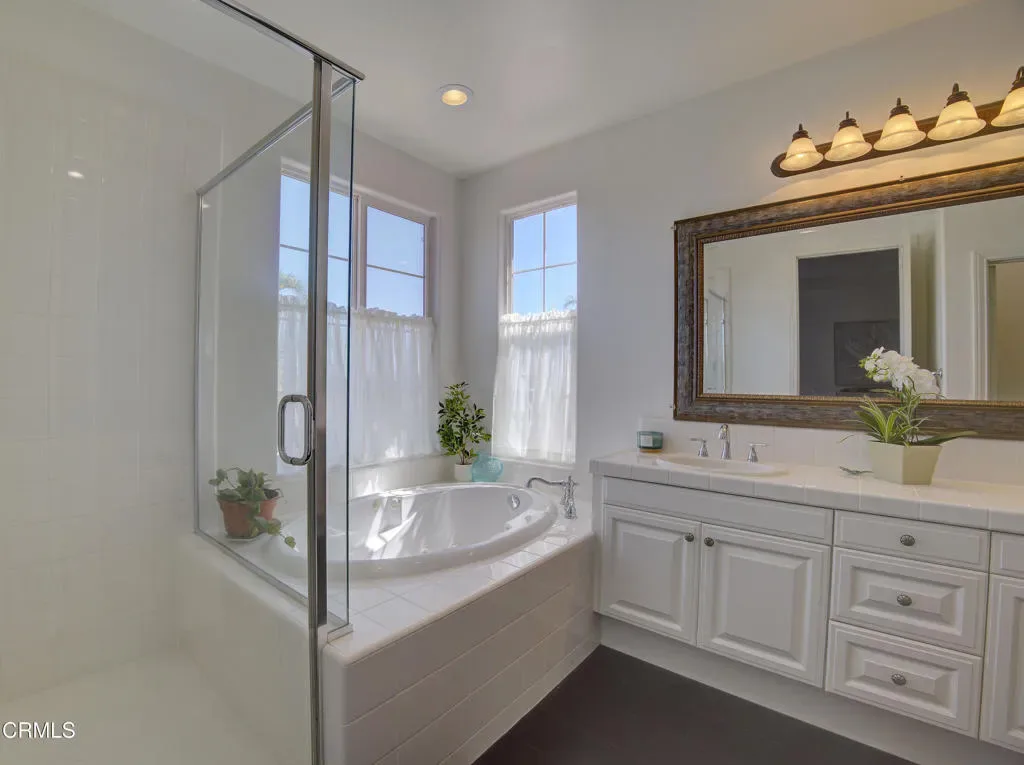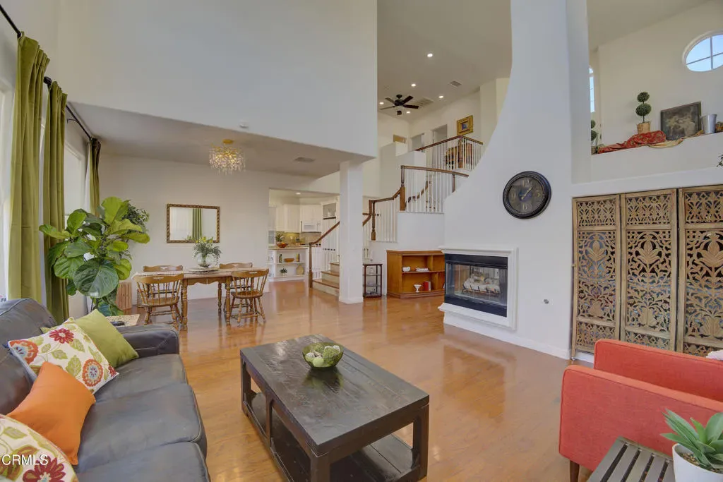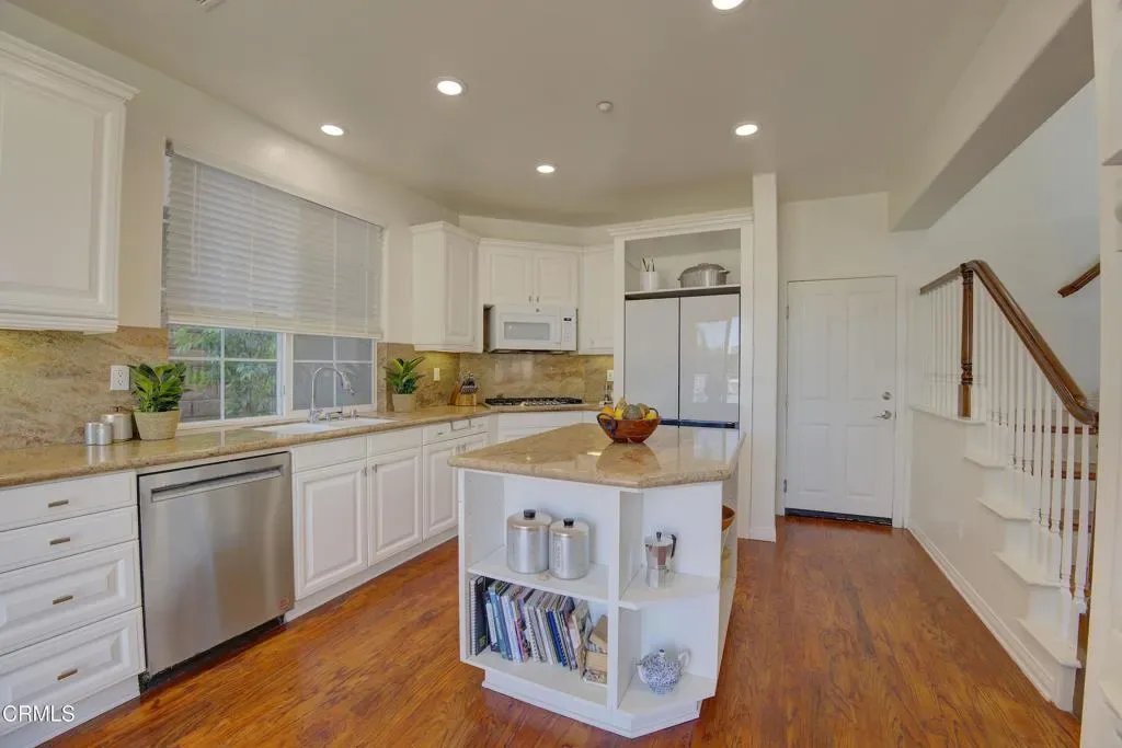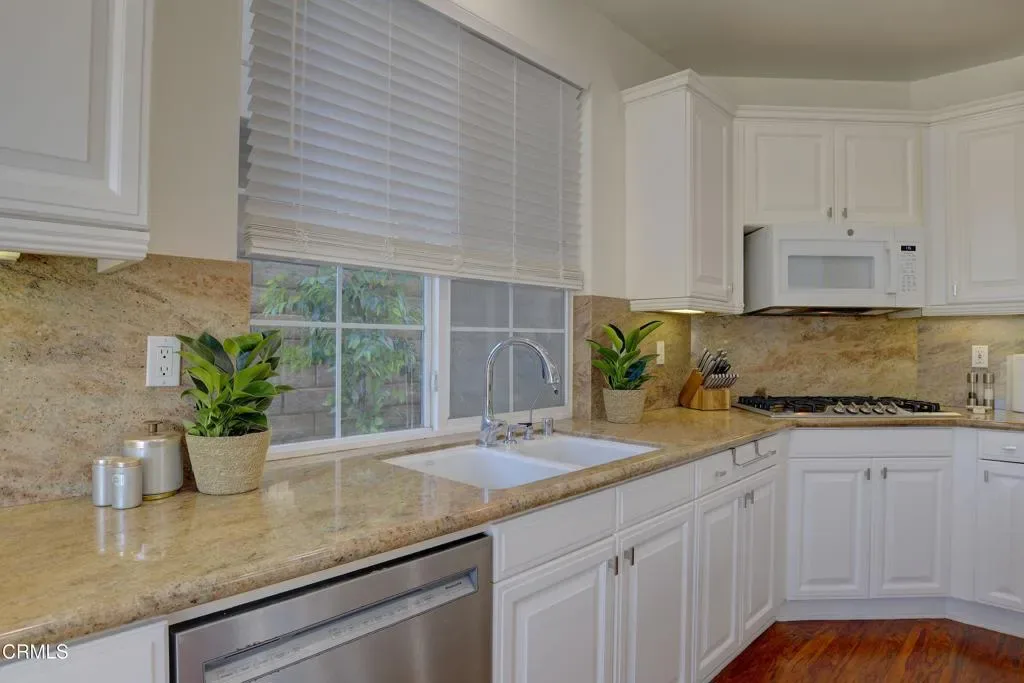 Beautifully upgraded 4-bedroom, 3-bath home offers 2,163 sq ft of thoughtfully designed living space in a highly desirable Ventura location. Built in 2006, this home features an outstanding floor plan with soaring ceilings and clerestory-style windows that provide abundant natural light while maintaining privacy. The gourmet island kitchen showcases elegant white cabinetry, natural slab granite countertops and backsplash, and hardwood plank flooring. Updated appliances include a designer glass-paneled refrigerator (2025), stainless steel cooktop (2022), dishwasher (2022), built-in microwave (2022), and self-cleaning double oven. The inviting living room features a stylish see-through gas fireplace, creating warmth and ambiance between living spaces.The spacious primary suite offers hardwood flooring, high ceilings, and abundant light, along with a luxurious bath featuring an oversized jetted soaking tub, separate shower, dual vanities, and new fixtures. Additional highlights include a downstairs bedroom and bath, interior laundry room with included Washer & Dryer (2024), recessed LED lighting (2026), dual-pane windows, central A/C, tankless water heater (2020), and soft water system (2020).Enjoy a quiet and private backyard with no rear neighbor views, designed for both relaxation and entertaining. Features include a full-width patio with ‘afternoon’ shaded seating, raised garden beds, apple tree, roses, and herbs, and multiple outdoor seating areas. The outdoor kitchen is equipped with a stainless steel BBQ with rotisserie, side burner, sink, and storage. Fire and water features, including propane fire pits and a water fountain, create a tranquil setting enhanced by solar lighting that truly comes alive at night. *Ideally located* in a walkable neighborhood near Ralphs, Trader Joes & additional shopping, multiple dining options, LA Fitness, Montalvo Hill Park, and everyday conveniences, and just a short drive to Ventura beaches, harbor, downtown, and The Collection in Oxnard. This exceptional property combines comfort, quality, and lifestyle in one remarkable offering….Happily with NO HOA Dues!