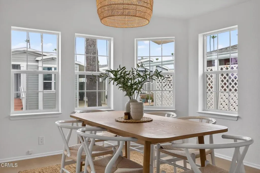 Welcome to coastal living at its finest in the highly desirable Marina Mobile Home Park, just moments from the beach and harbor. This beautifully reimagined residence offers a rare blend of modern comfort and relaxed seaside charm.Thoughtfully updated from top to bottom, the home showcases a new roof, new furnace, new stack-stone apron along front & carport entry, fresh interior and exterior paint, and all-new flooring featuring luxury vinyl plank throughout with low profile carpet in the bedrooms. The redesigned kitchen shines with new quartz countertops, sleek appliances, and updated lighting, creating a bright and inviting space for both everyday living and entertaining.Spanning a spacious and flexible layout, the home features 2 bedrooms plus a separate office/den/bonus room–ideal for guests or a creative retreat–along with 2 well-appointed bathrooms and a convenient interior laundry room. Tall ceilings and abundant natural light enhance the airy, open feel, bringing a sense of calm and sophistication to every room.Enjoy the best of coastal Ventura living with nearby beaches, marina access, and ocean breezes just outside your door.