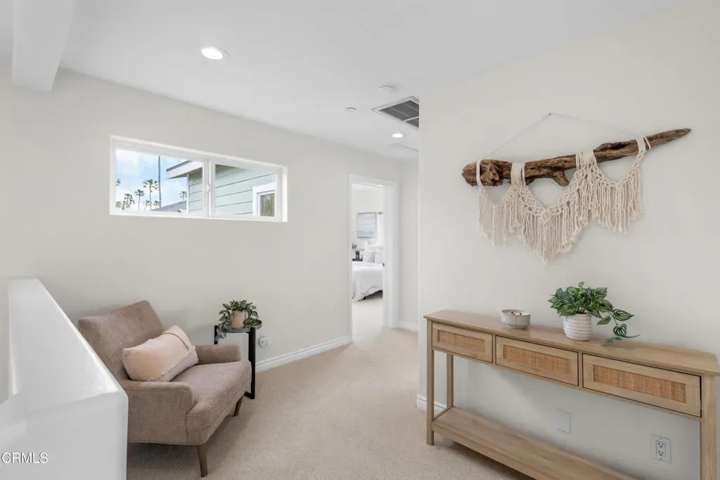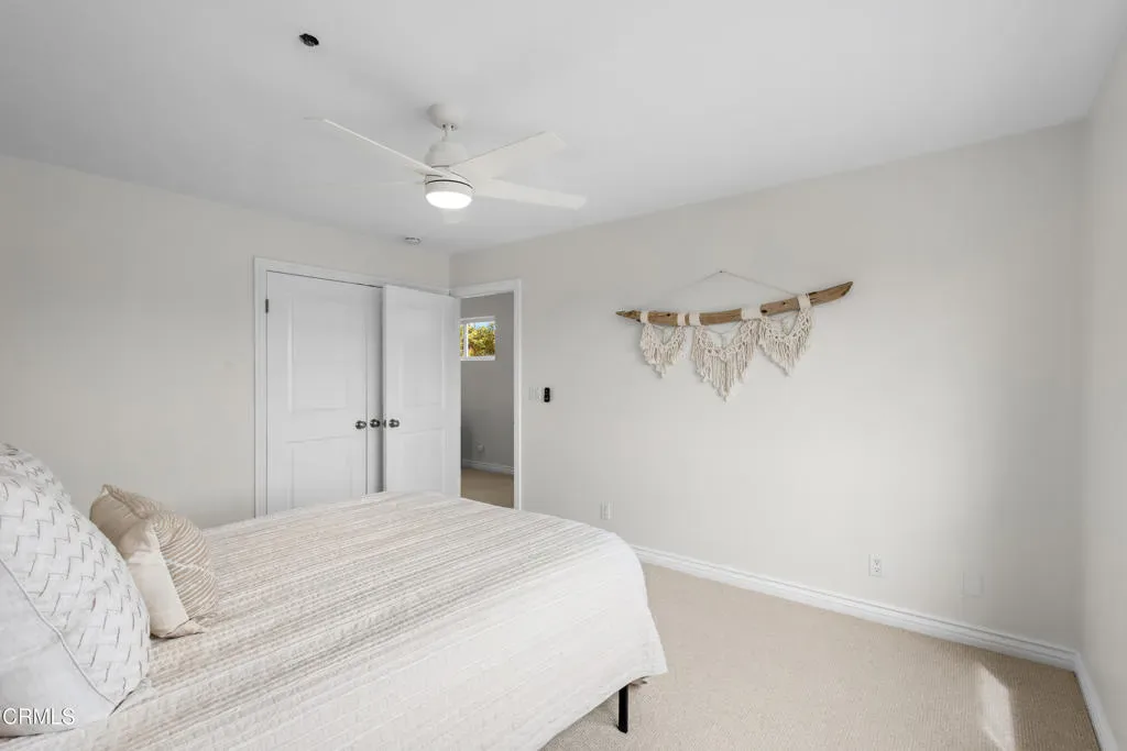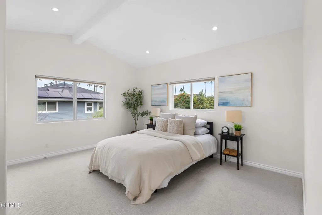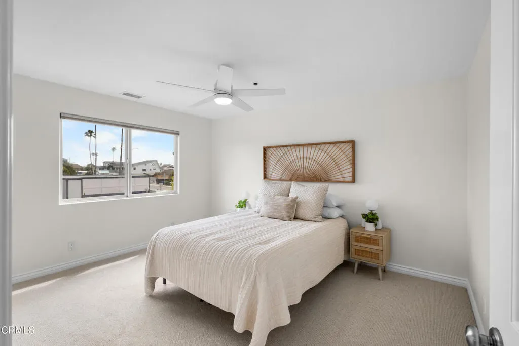 Welcome to this beautifully upgraded two-story beach home in the highly desirable Pierpont neighborhood of Ventura. Built in 2003 and thoughtfully enhanced throughout, this exceptional residence offers 4 bedrooms, 3 full bathrooms, and approximately 2,275 square feet of living space delivering the perfect blend of coastal charm, comfort, and modern sophistication.Step inside through the newly installed front entry Dutch door perfect for capturing the refreshing ocean breeze and experience a light-filled, open-concept layout designed for both everyday living and effortless entertaining. The gourmet kitchen features granite countertops, stainless steel appliances, and seamless flow into the dining area and spacious living room. Soaring ceilings, a cozy fireplace, and a combination of laminate and elegant travertine flooring create a warm yet refined atmosphere throughout the main level. A convenient downstairs bedroom with adjacent full bath is ideal for guests or multi-generational living.This home has been upgraded with attention to both style and functionality. Enhancements include new recessed lighting and ceiling fans, fresh interior and exterior paint (including the garage), and upgraded window coverings in the bedrooms. Plush new carpet and padding add comfort to the upper level, creating a true retreat experience.Upstairs, the expansive primary suite offers high ceilings, a generous walk-in closet, and a spa-inspired en-suite bath complete with marble countertops and a soaking tub–perfect for unwinding after a day at the beach.The exterior has been meticulously improved to elevate curb appeal and outdoor living. Custom entry and side gates with frosted glass and keyless access provide both privacy and convenience. The professionally upgraded landscaping features new sod, lush plants, vines, and a fully automated drip and sprinkler system controlled by app. Custom exterior lighting, including Malibu landscape lighting, enhances the ambiance and showcases the property beautifully in the evening. The backyard is designed for relaxation and entertaining, complete with ample dining space and a tranquil waterfall feature.Ideally located within walking distance to Pierpont Elementary School, Marina Park, local shops, restaurants, and the scenic coastal promenade, this home offers the ultimate beach lifestyle–where ocean breezes, morning walks, and sunset views are part of your everyday routine.