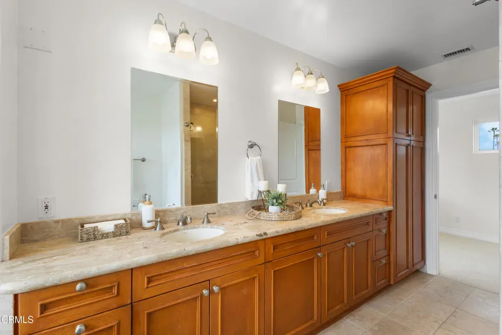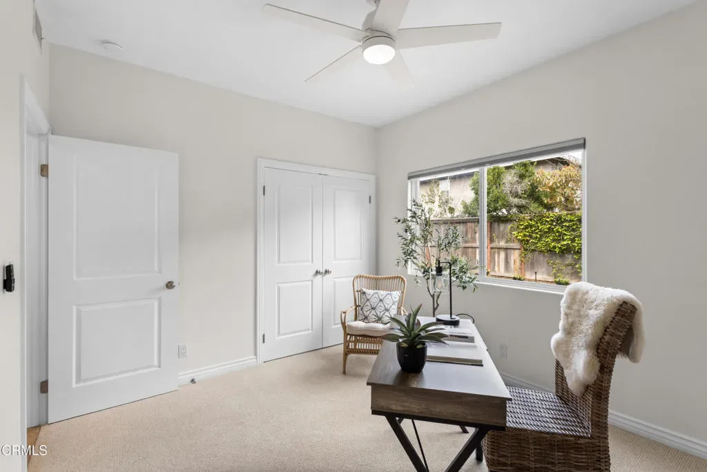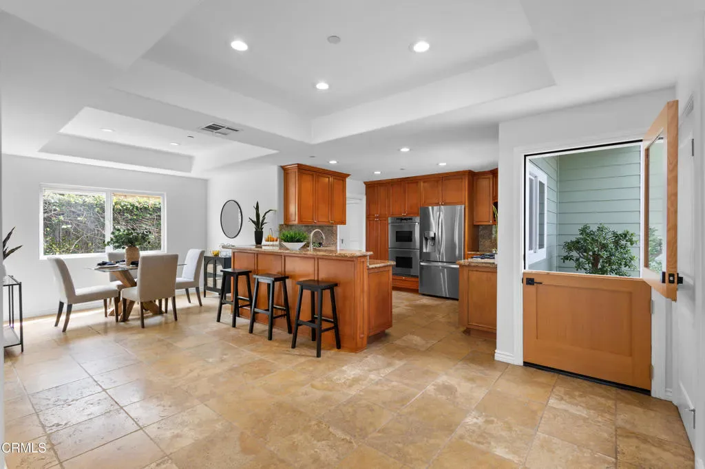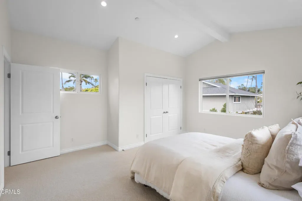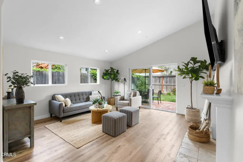 Welcome to this beautifully upgraded two-story beach home in the highly desirable Pierpont neighborhood of Ventura. Built in 2003 and thoughtfully enhanced throughout, this exceptional residence offers 4 bedrooms, 3 full bathrooms, and approximately 2,275 square feet of living space delivering the perfect blend of coastal charm, comfort, and modern sophistication.Step inside through the newly installed front entry Dutch door perfect for capturing the refreshing ocean breeze and experience a light-filled, open-concept layout designed for both everyday living and effortless entertaining. The gourmet kitchen features granite countertops, stainless steel appliances, and seamless flow into the dining area and spacious living room. Soaring ceilings, a cozy fireplace, and a combination of laminate and elegant travertine flooring create a warm yet refined atmosphere throughout the main level. A convenient downstairs bedroom with adjacent full bath is ideal for guests or multi-generational living.This home has been upgraded with attention to both style and functionality. Enhancements include new recessed lighting and ceiling fans, fresh interior and exterior paint (including the garage), and upgraded window coverings in the bedrooms. Plush new carpet and padding add comfort to the upper level, creating a true retreat experience.Upstairs, the expansive primary suite offers high ceilings, a generous walk-in closet, and a spa-inspired en-suite bath complete with marble countertops and a soaking tub–perfect for unwinding after a day at the beach.The exterior has been meticulously improved to elevate curb appeal and outdoor living. Custom entry and side gates with frosted glass and keyless access provide both privacy and convenience. The professionally upgraded landscaping features new sod, lush plants, vines, and a fully automated drip and sprinkler system controlled by app. Custom exterior lighting, including Malibu landscape lighting, enhances the ambiance and showcases the property beautifully in the evening. The backyard is designed for relaxation and entertaining, complete with ample dining space and a tranquil waterfall feature.Ideally located within walking distance to Pierpont Elementary School, Marina Park, local shops, restaurants, and the scenic coastal promenade, this home offers the ultimate beach lifestyle–where ocean breezes, morning walks, and sunset views are part of your everyday routine.