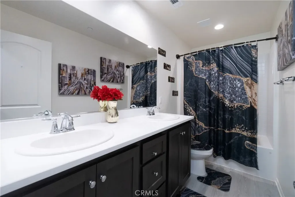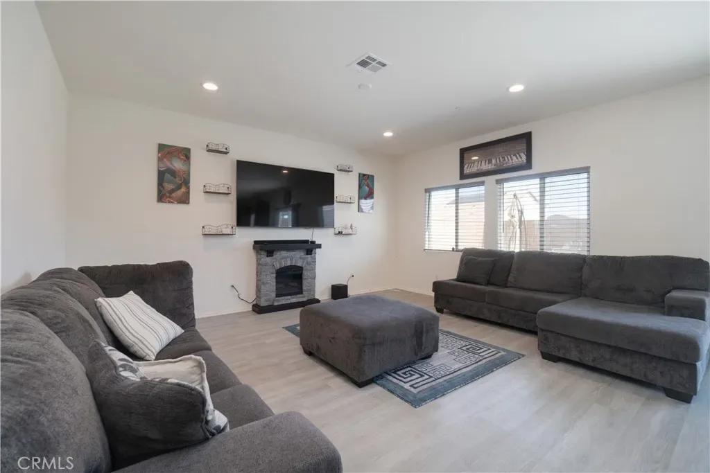 Welcome to 11347 Quail Hollow St. in Victorville, CA 92392—a stunning opportunity to own a beautifully positioned home featuring $50,000 in upgrades and a fully paid-off solar system for maximum energy efficiency. This impressive residence offers 2,308 square feet of thoughtfully designed living space, including five spacious bedrooms and three well-appointed bathrooms. The interior features an open-concept floor plan with soaring ceilings and abundant natural light. Highlights include a downstairs bedroom, a versatile upstairs loft, and a kitchen equipped with generous counter space, a complete back-splash, and ample cabinetry. The primary suite serves as a private retreat with a spacious design and an en-suite bathroom. Outside, you will find a versatile yard with custom cement work, artificial turf, and an outdoor fire pit—perfect for enjoying the Southern California sunshine. The exterior also boasts fresh new paint and excellent curb appeal. Conveniently located near shopping, dining, parks, and commuter routes, this property perfectly combines style, comfort, and location.