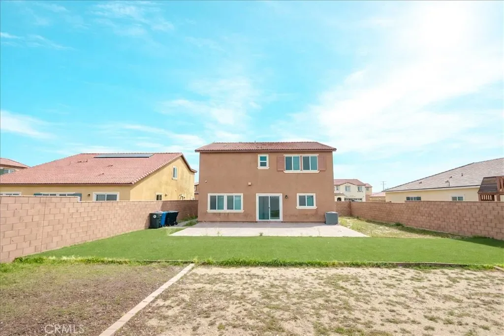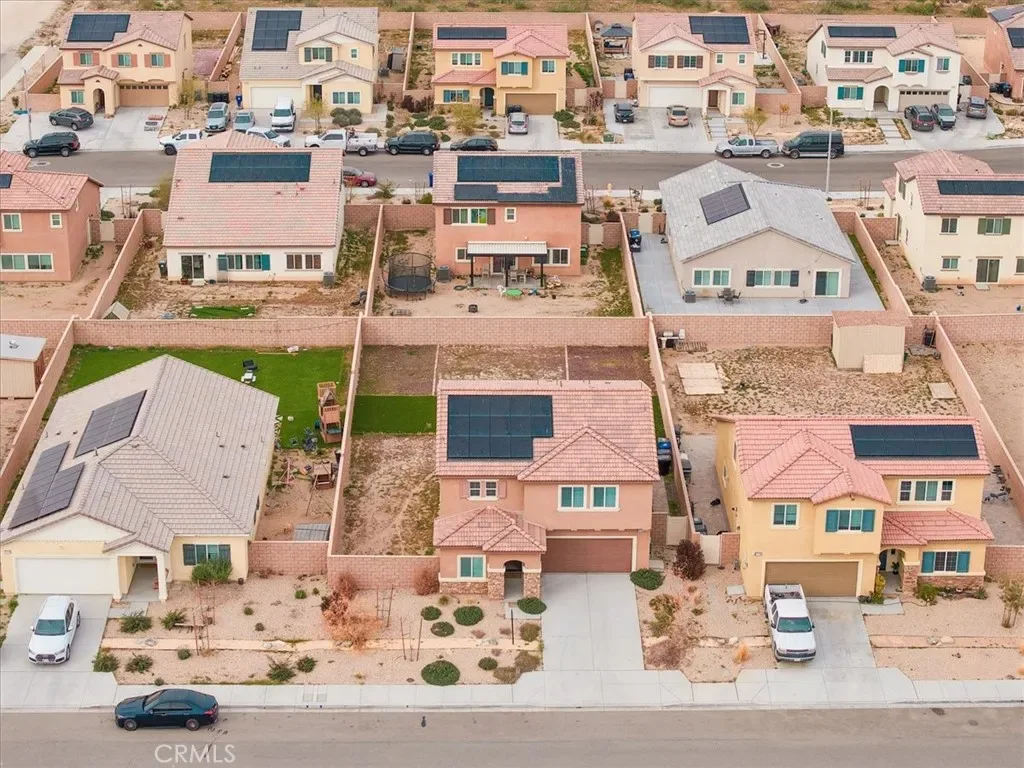 Built in 2022, this stunning 5 bed, 3 bath home in the highly desirable Verbena community offers approx. 2,311 sq ft of modern, functional living space. Open-concept floor plan features a spacious great room, dining area, and upgraded gourmet kitchen with quartz countertops, white shaker cabinetry, stainless steel appliances, center island, and walk-in pantry. Convenient main-level bedroom and full bath ideal for guests, multigenerational living, or home office. Energy-efficient upgrades include paid solar, smart home technology, tankless water heater, central HVAC, and attached 2-car garage. Situated on a generous lot with room to create your dream backyard or covered patio. Prime commuter-friendly location close to major retail, dining, and entertainment including The Mall of Victor Valley, Dunia Plaza, Desert Plazas, and The Crossroads at 395, offering extensive shopping, restaurants, and daily conveniences.