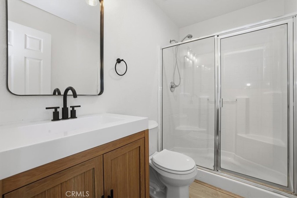 You can’t miss this spacious REMODELED home that boasts 5 bedrooms and 3 full bathrooms. On the first level there is a bedroom and a FULL bathroom. Great for anyone who can’t go upstairs. Upstairs there are 4 more bedrooms and a spacious loft area. Upstairs there’s a spacious master bedroom with a master bathroom that has a shower and a tub. Master bedroom has a WALK-IN closet. Home has been remodeled throughout. New Vinyl flooring throughout the home. A NEW beautiful kitchen with trendy kitchen cabinets, new quartz countertops, and NEW stainless-steel appliances. A new water heater, new bathroom vanities and much more to see, don’t miss this one. Big backyard and big side yard. Would make a great RV or trailer parking space.