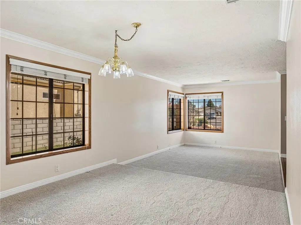 Welcome to this beautifully maintained home located at 12860 Greensboro Road in Spring Valley Lake, where comfort & elegance meet a golfer’s dream lifestyle. Nestled on the Bear Valley Golf Course, this 3-bedroom, 2-bathroom gem offers 2,033 sq ft of living space, perfectly designed to provide both relaxation & entertaining opportunities. As you step inside, the sunken formal living room welcomes you with its inviting ambiance, while the formal dining room offers a sophisticated space for hosting special occasions. Throughout the home, you’ll find elegant crown molding, adding a touch of sophistication to every room. The family room, complete with a cozy fireplace & views out every window, is an ideal retreat for any time of year. The kitchen is a chef’s delight, featuring sleek granite countertops, stainless steel appliances, a walk-in pantry, and a skylight that bathes the space in natural light. Enjoy meals in the charming breakfast nook, where you’ll have a front-row seat to the golf course. The primary suite is a true sanctuary, offering double door entry, a cedar-lined walk-in closet, and direct access to the backyard, where you can unwind on the covered patio. The en-suite bath boasts granite counter tops, double sinks & a walk-in tile shower, adding a touch of luxury to your daily routine. For added convenience, the home features an indoor laundry room with ample storage cabinets, a sink, & a built-in desk area—ideal for keeping things organized & out of sight. This home also offers an attached 2-car garage, complete with an automatic opener, built-in cabinets, & a workbench, making it the perfect space for storage & projects. Plus, the home has a new water heater, ensuring peace of mind for years to come. With a spacious lot, a beautifully landscaped backyard with lush grass, & a low-maintenance front yard, this home is perfect for outdoor living. Relax on the covered patio while enjoying peaceful sunsets & scenic golf course views. Residents of Spring Valley Lake enjoy incredible amenities including a 200-acre private lake for boating, fishing, & swimming, a beach area, parks, & a vibrant community center. For golf & recreation enthusiasts, join the Bear Valley Country Club that offers a Robert Trent Jones-designed 18-hole golf course along with tennis, pickleball, racquetball, a fitness center, Olympic-sized pool, jacuzzi, & sauna. Don’t miss the opportunity to own a beautiful golf course home in the sought-after Spring Valley Lake community.