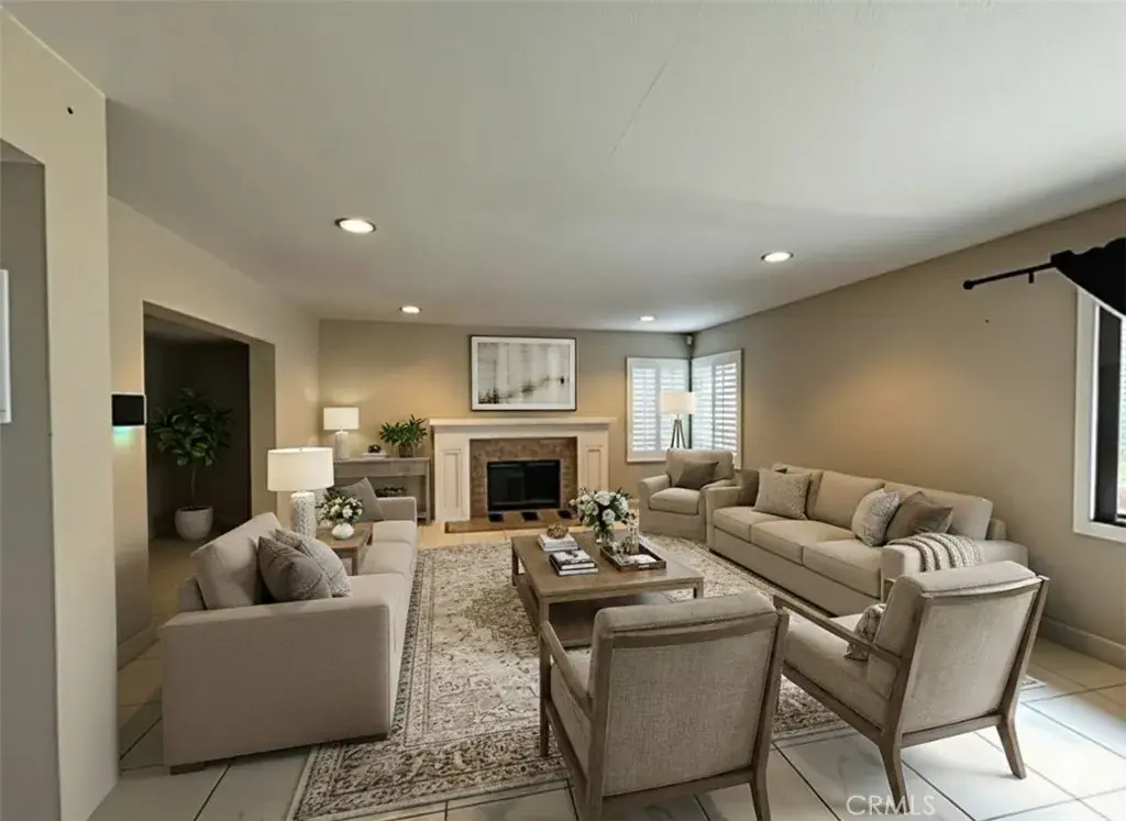 • Grand Living Spaces: Step into a light-filled interior boasting multiple living areas, including a formal living/dining combo and a cozy family room anchored by a brick fireplace.