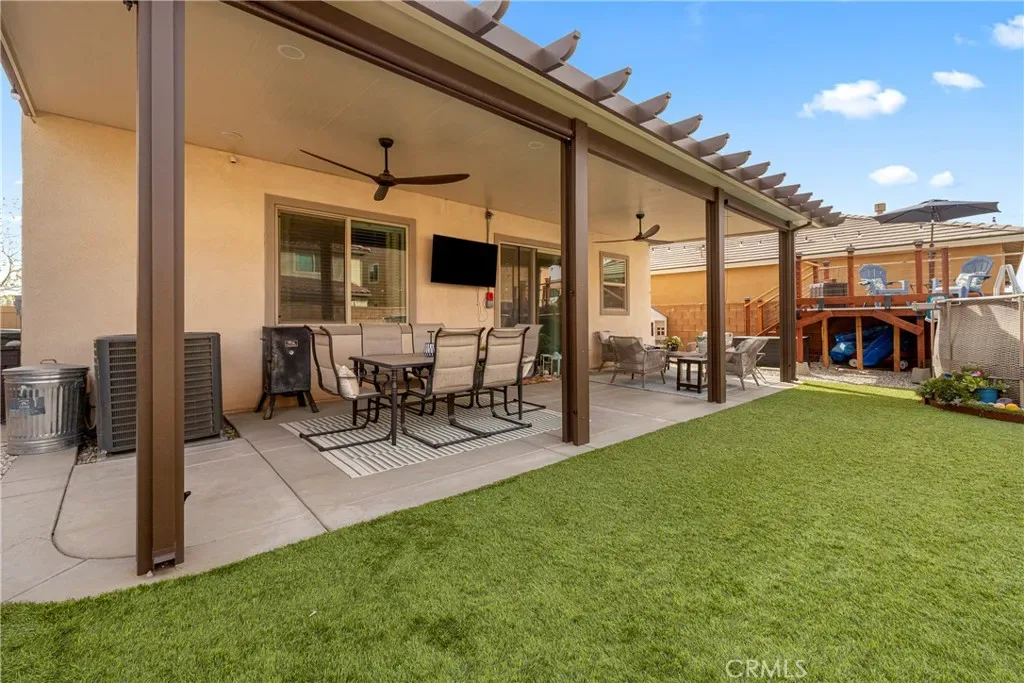 Step outside to your private backyard oasis, complete with a large above ground pool, pool equipment and its own custom wood deck. The covered insulated patio is equipped with pull-down sunshades for added comfort, and the low maintenance artificial turf enhances the outdoor space year round. The extended driveway provides additional parking, adding both convenience and functionality. Don’t miss this incredible opportunity, schedule your showing today!