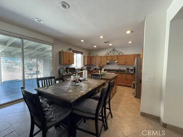 Spacious two-story home in Victorville featuring 5 bedrooms and 3 bathrooms. This well-designed floor plan offers both a living room and a family room with a cozy gas fireplace. The large kitchen opens seamlessly to the family room, perfect for entertaining and everyday living. One bedroom and a full bathroom are conveniently located downstairs, along with an indoor laundry room.