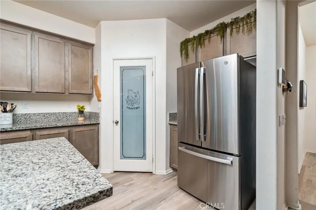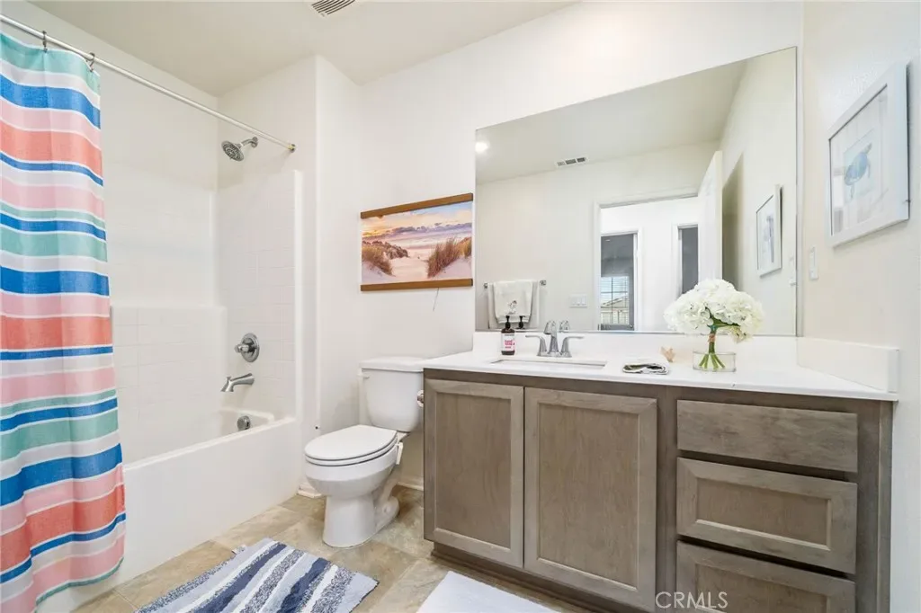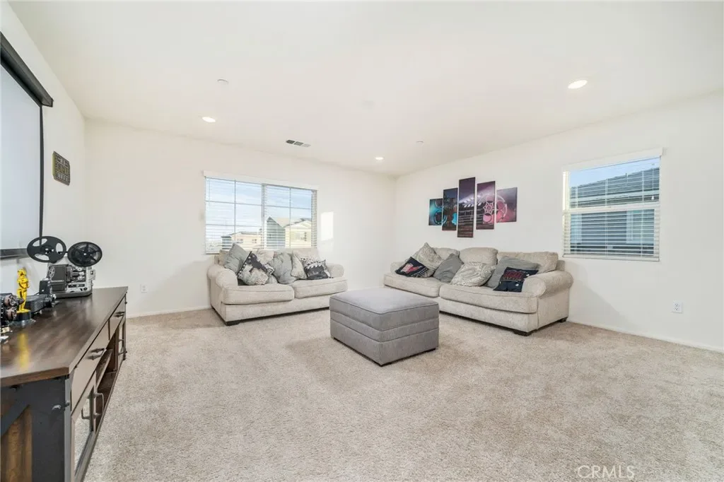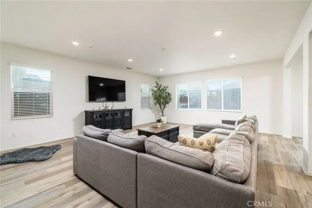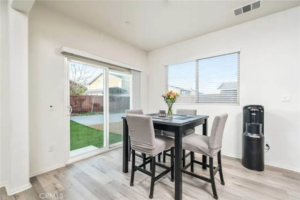 TURN KEY MULTI GENERATIONAL HOME WITH SOLAR IN DIAMOND RIDGE. Built in 2020 by Frontier Homes, this spacious and thoughtfully designed single-family residence offers a blend of modern comfort, functionality, and location. Featuring 5 bedrooms, 4 bathrooms, and approximately 2,915 square feet on a 7,300 square foot lot, this home provides ample room for everyday living and entertaining. A large open-concept great room welcomes you upon entry, seamlessly connecting the kitchen, dining, and living areas. Filled with natural light, this space feels open and inviting. The kitchen features granite countertops, a walk-in pantry, and pendant lighting over a generous island—ideal for meal prep or casual dining. The adjacent dining area makes hosting easy and convenient. Wide plank laminate wood flooring runs throughout the main living areas, offering both style and durability. The home also includes over $11,000 in builder upgrades, including flooring and window coverings. The versatile floorplan includes two downstairs bedrooms—one with an en-suite bathroom—ideal for guests or in-law living. Upstairs, a spacious loft offers flexibility for a media room, workspace, or additional living area. The primary suite features a large walk-in closet and an en-suite bathroom with dual vanities, a separate tub, and shower. Two additional bedrooms and an upstairs laundry room complete the upper level. The backyard is designed for both enjoyment and low maintenance, featuring artificial turf, a large storage shed, and a variety of fruit trees including grapes, pears, figs, peaches, apples, plums, and watermelon. Additional highlights include a two-car attached garage, extended driveway for extra parking, and NO HOA. A solar system at $157 per month helps keep electricity costs low. Ideally located less than one mile from Vista Verde Elementary, under two miles from Silverado High School, and one mile from Mesa Linda Park. Adelanto Marketplace—featuring Stater Bros., Starbucks, Walmart, and more—is just 1.5 miles away.