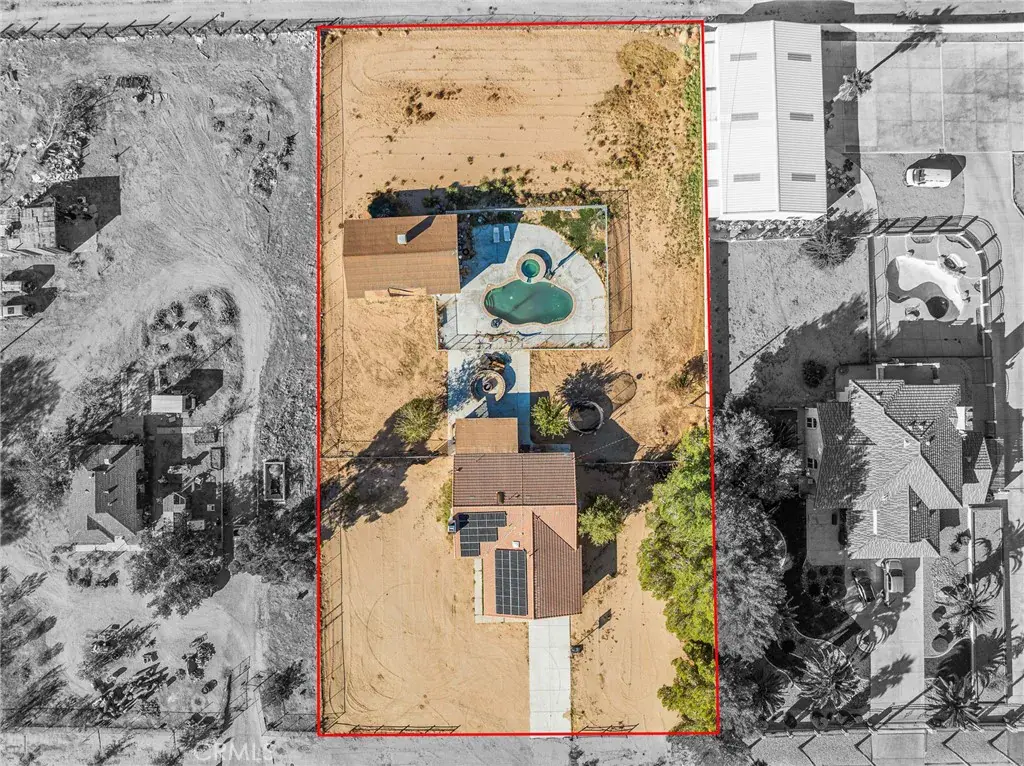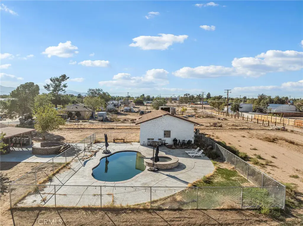 Welcome to your High Desert pool home retreat! This beautiful 4-bed, 2-bath home sits on just over an acre, offering modern comfort, wide-open space, and endless possibilities. Inside, natural light fills an open layout with spacious living and family rooms, a cozy brick fireplace, and a stunning kitchen featuring a large breakfast bar perfect for entertaining. Step outside to your fully fenced sparkling in-ground micro-pebble finish pool and spa with optional saltwater system and lights. Enjoy the backyard surrounded by desert views with your grand fire pit and the room to expand. The detached workshop is just over 1,000 sq ft with LED lighting is ideal for hobbies or storage, and the large lot offers plenty of flexibility. Energy-efficient upgrades include newer solar panels, HVAC, electrical updates, and roof. The newer solar system allows for possibility to produces an overage of power to accommodate the pool and the workshop. Conveniently located near shopping, dining, this home combines modern living with the peaceful desert lifestyle, the perfect place to unwind, create, and call home.