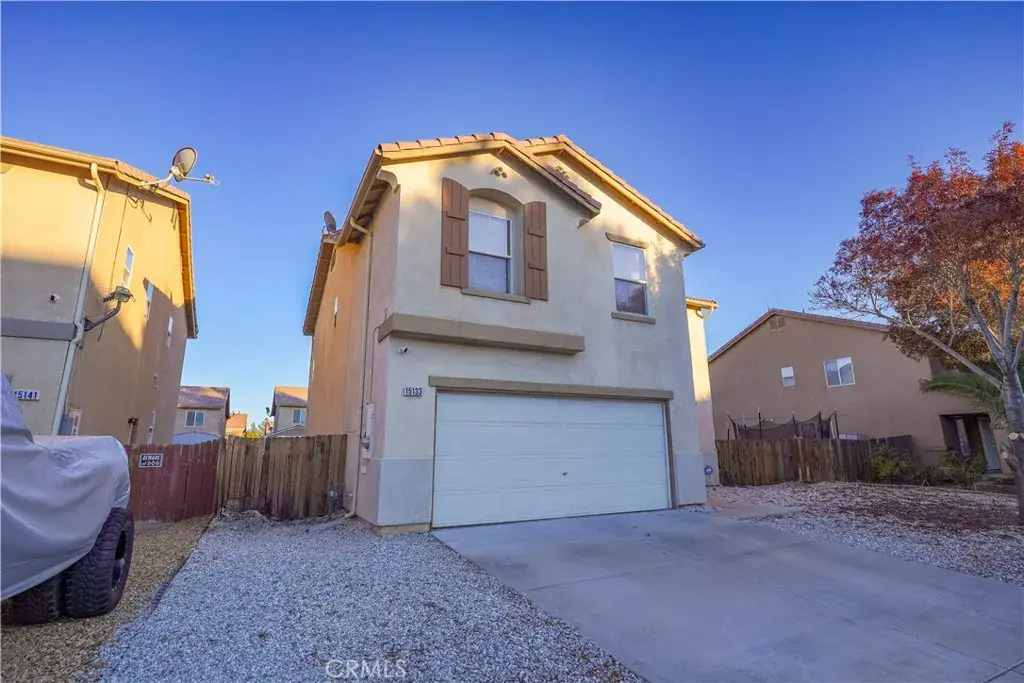 Nestled in a peaceful Victorville community, this beautifully designed 4-bedroom, 2.5-bath home stretches across nearly 2,000 square feet of light-filled living, offering the perfect blend of style, space, and serenity. From the moment you walk in, you’re greeted by an atmosphere that feels warm, open, and effortlessly welcoming — the kind of home where family memories are made, where joy lingers in the corners, and where life slows down just enough to savor it. The open-concept living area invites connection — imagine holidays filled with laughter, quiet mornings with coffee in hand, and evenings spent unwinding under soft, golden light. The kitchen stands at the heart of it all: warm, functional, and ready for everything from Sunday pancakes to late-night conversations. Upstairs, you’ll find generously sized bedrooms designed for comfort and calm. The primary suite is its own little retreat — a peaceful getaway with space to breathe, space to dream, and space to simply be. With upstairs laundry, thoughtful layout, and plenty of storage, the entire home is shaped around everyday ease. Step outside, and the backyard greets you with open arms — a canvas waiting for your vision. Picture string lights swaying in the evening breeze, kids chasing each other barefoot across the grass, or weekend BBQs surrounded by the people you love. The space is yours to create, yours to shape, yours to grow. Perfectly positioned near schools, shopping, commuter routes, and everyday necessities, this home offers convenience without sacrificing tranquility. Here, you’re close to everything — but still far enough to feel the peace you deserve.